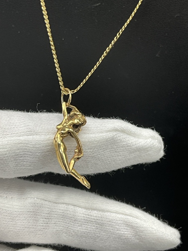 14K Yellow Gold Nude Pendant and Necklace. Artisan signed illegibly.