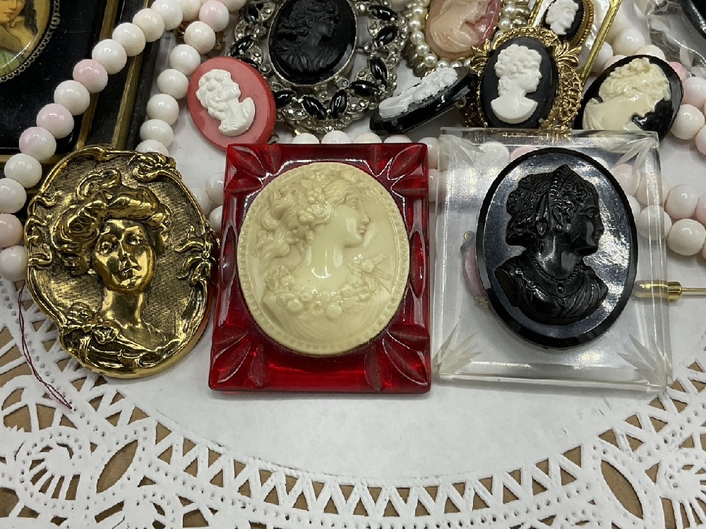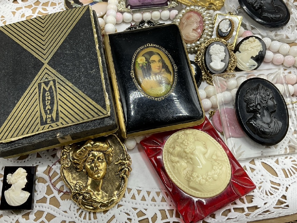 Estate Compiled Vintage Cameos w/ Mondaine NY Compact. As seen in photograph preview.