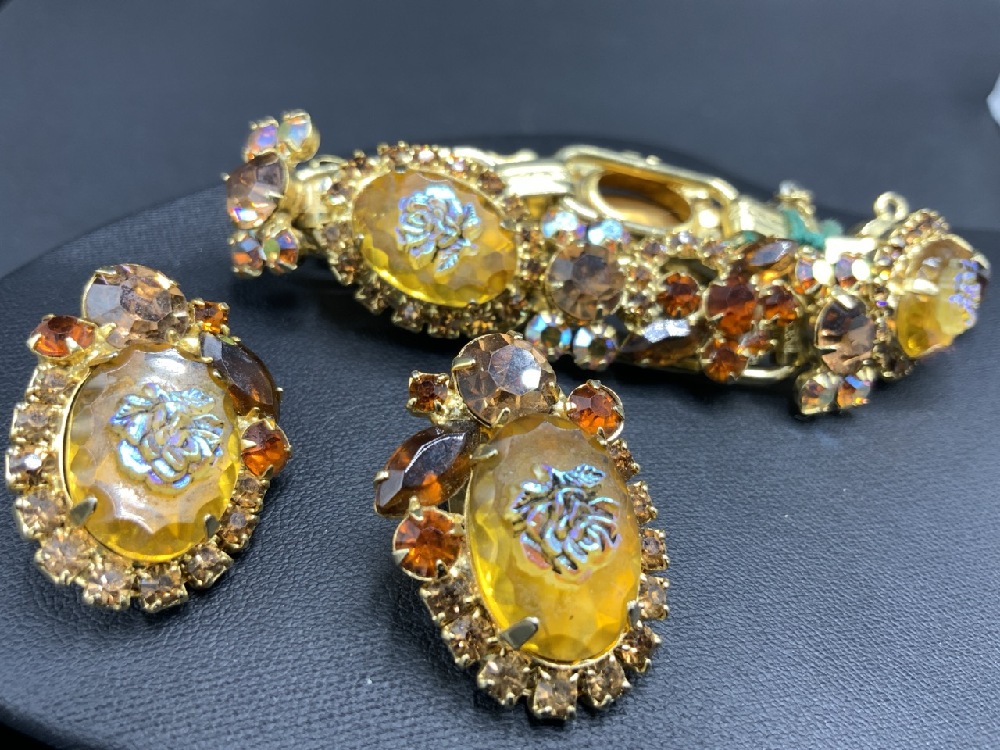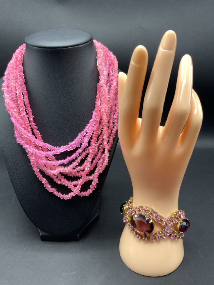 Estate Compiled Vintage Rhinestone and Glass Bead Jewelry Lot. Necklaces, Brooch and Earrings, Bracelets Etc. As seen in photograph preview.