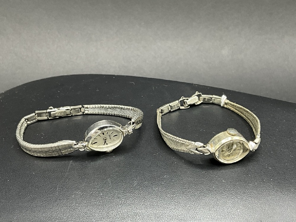 Two (2) 14K White Gold Wrist Watches. Watch cases only are gold.