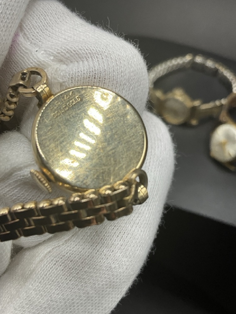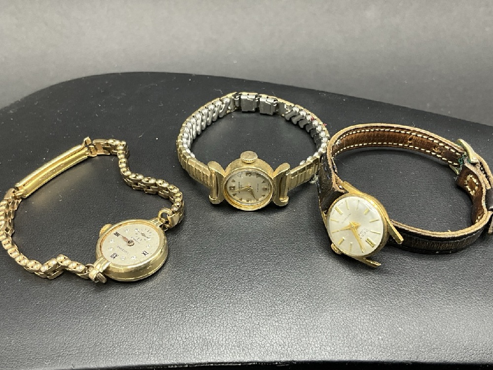 Three (3) 14K Yellow Gold Wrist Watches. Watch cases only are gold.