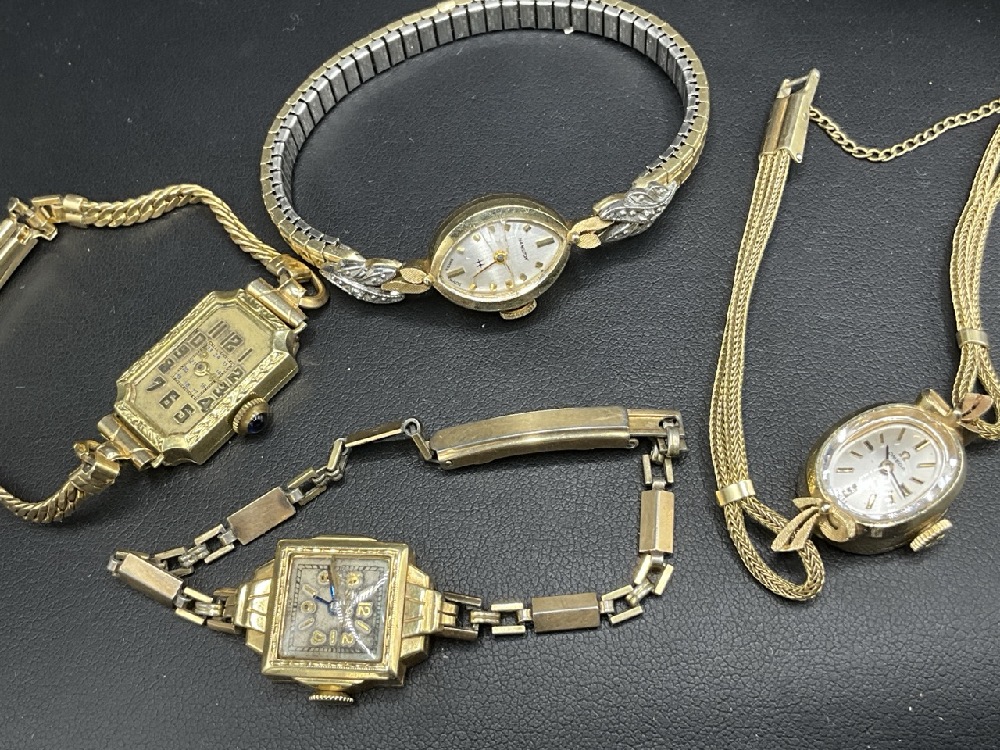 Four (4) 14K Yellow Gold Lady's Wristwatches.