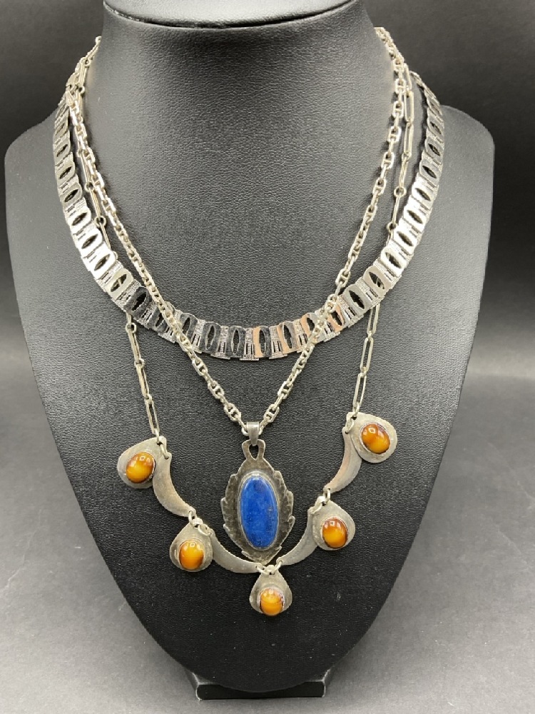 Compiled Sterling Silver Necklaces Group. Total weight: 212 Grams. One necklace is 835 Silver.