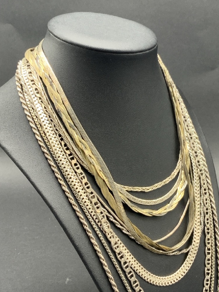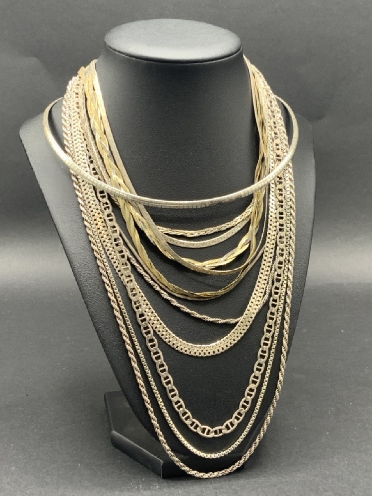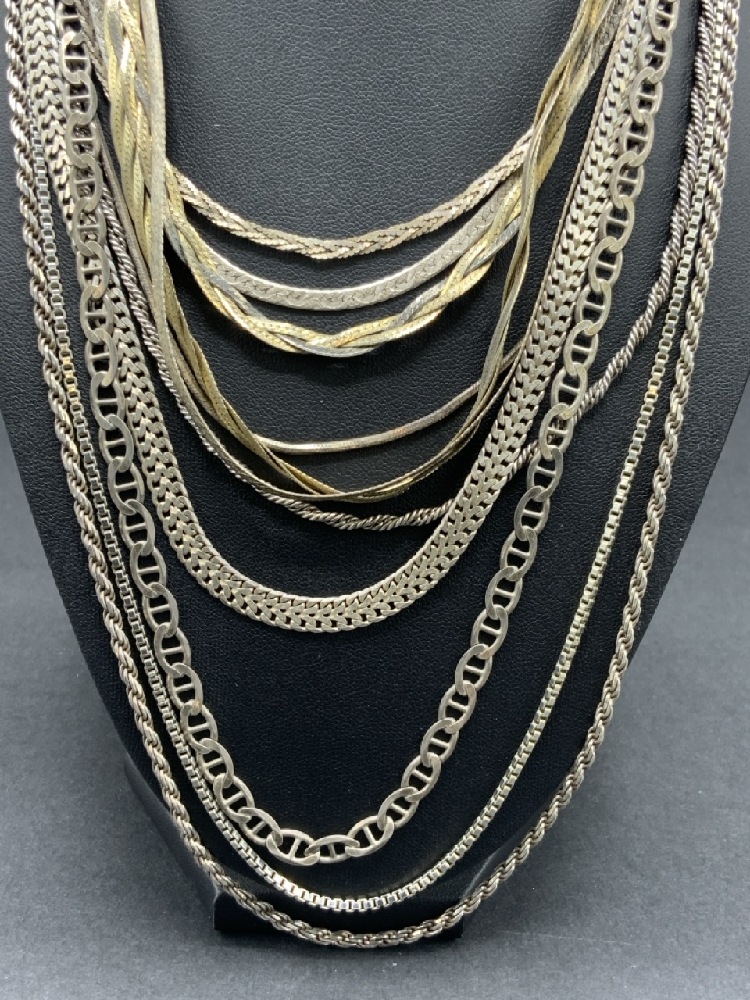 Compiled Sterling Silver Necklaces. As seen in photograph preview.