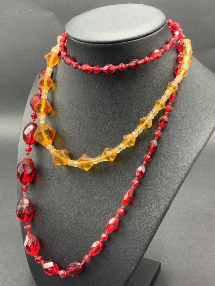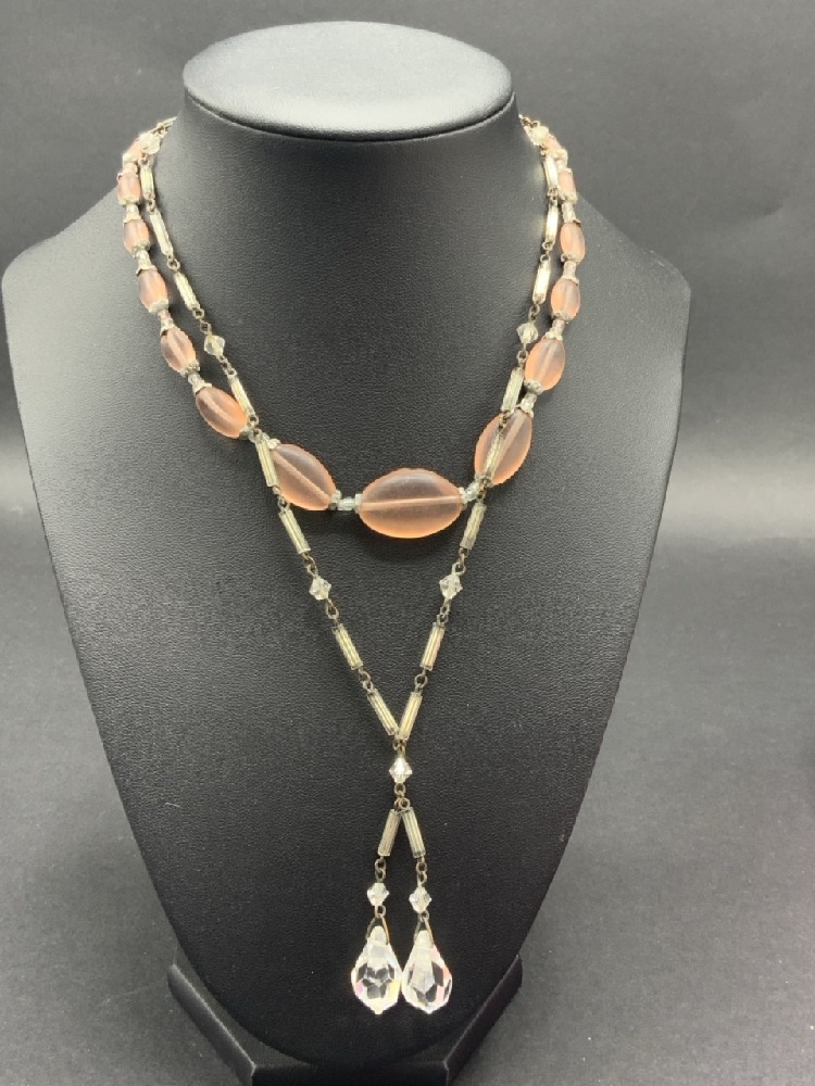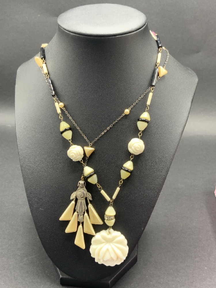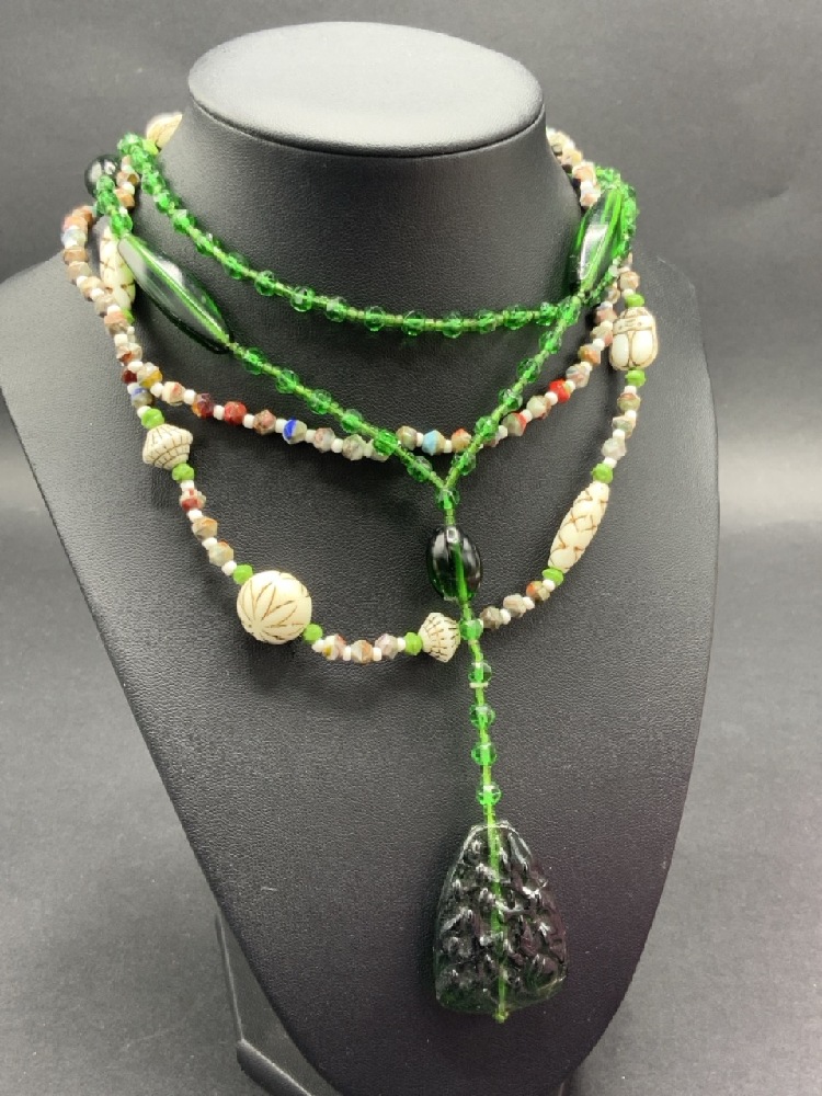 Vintage Estate Compiled Costume Jewelry Lot w/Art Deco Glass Necklaces. As seen in photograph preview.