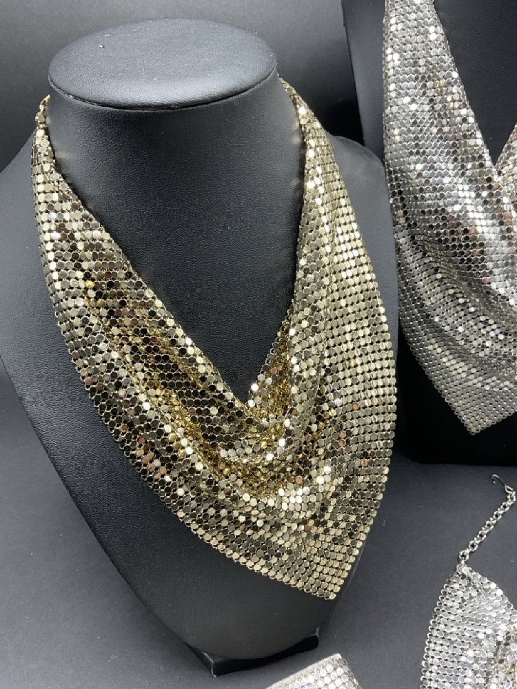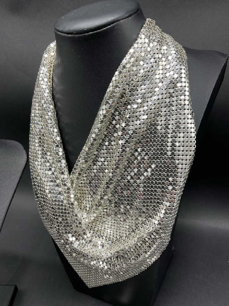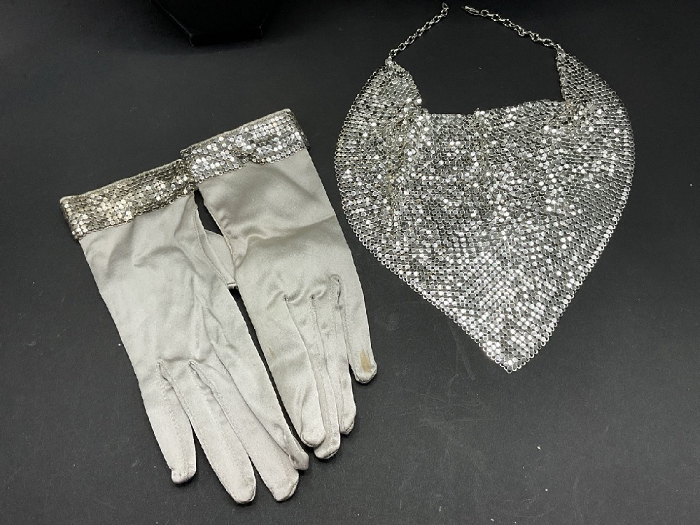 Vintage Whiting & Davis Bib Necklaces & Silver Gloves. As seen in photograph preview. Gloves are not signed, match nicely.