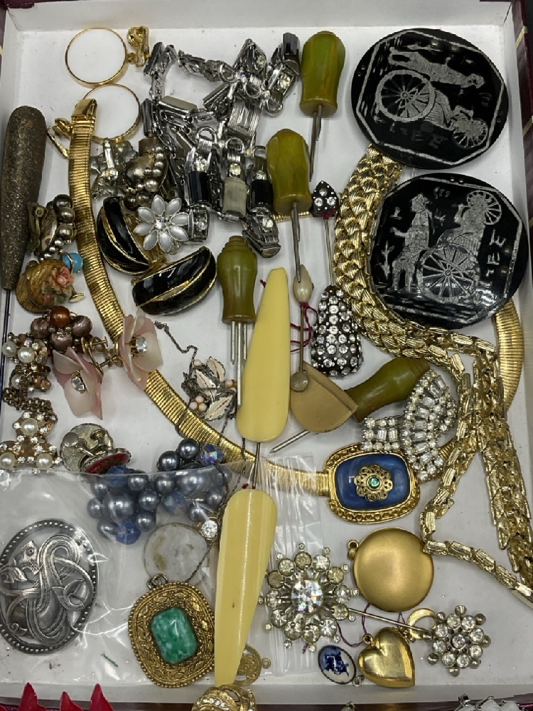 Compiled Lot of Vintage Jewelry- Bakelite, Trifari, Monet, E.N & Co, Lisner, Coro, B.S.K.