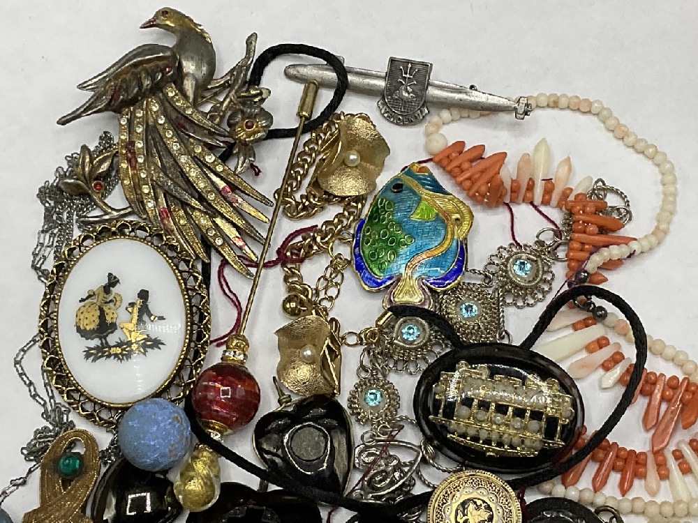 Vintage Costume Jewelry Grouping w/ Sterling Silver. Beau sterling pin, pocket knife, pins, necklaces etc. As seen in photograph preview.
