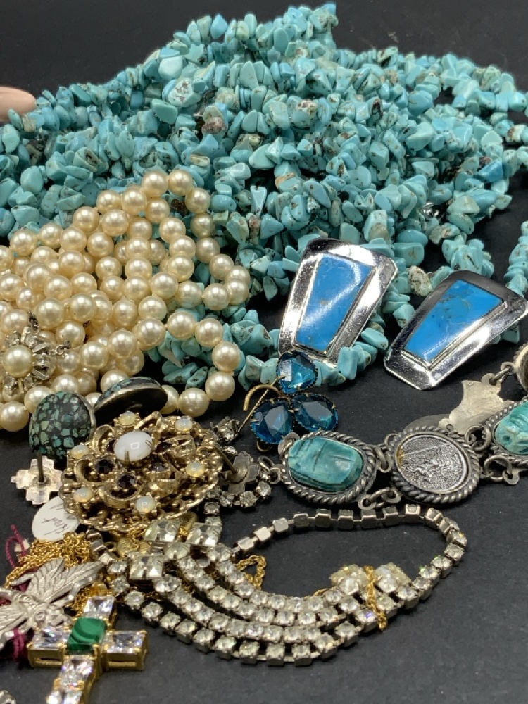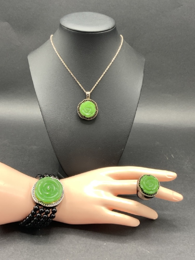 Estate Compiled Costume With Sterling Silver, Turquoise and Parure Sterling Set with Green Stone Jewelry. As seen in photograph preview.