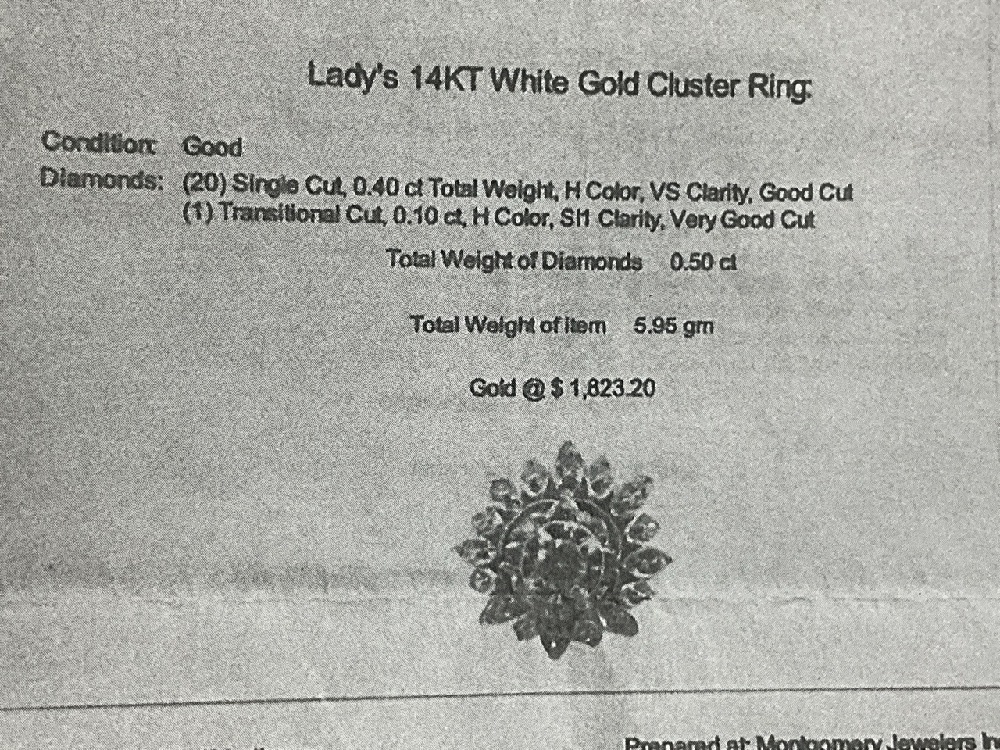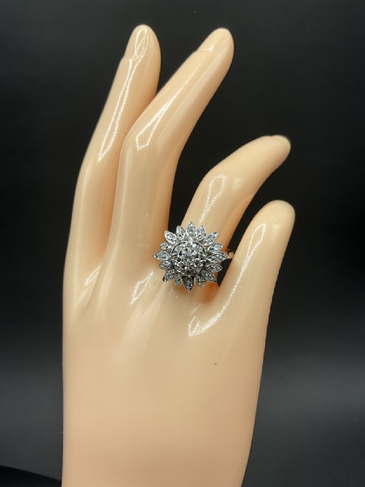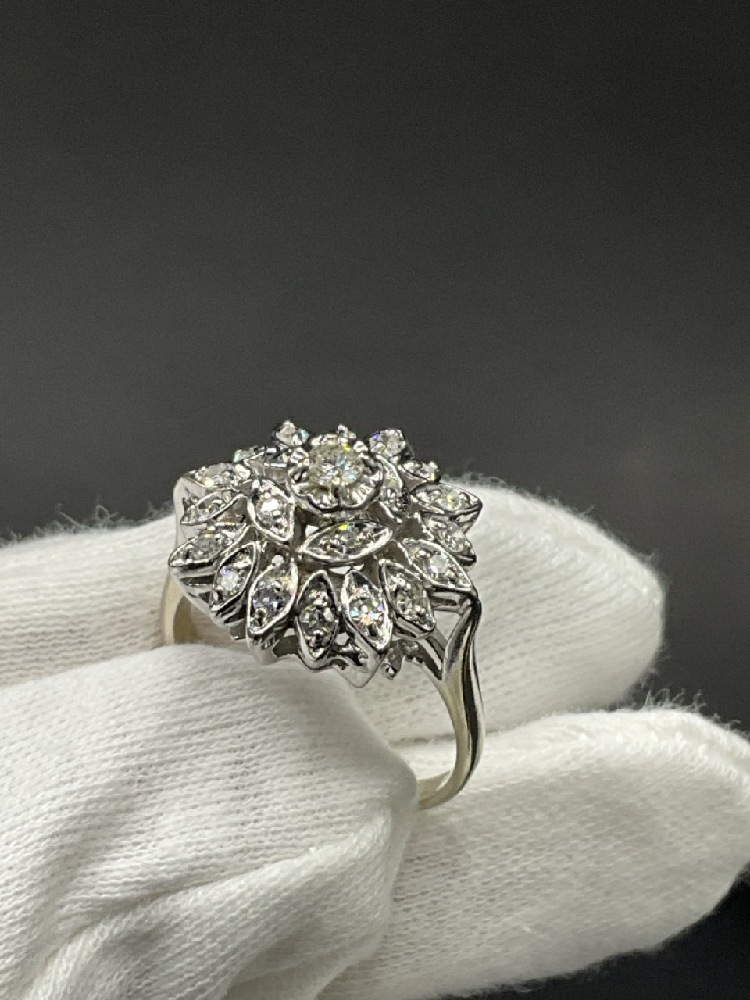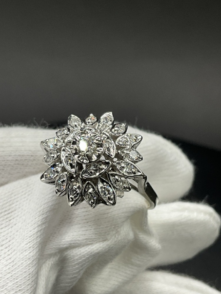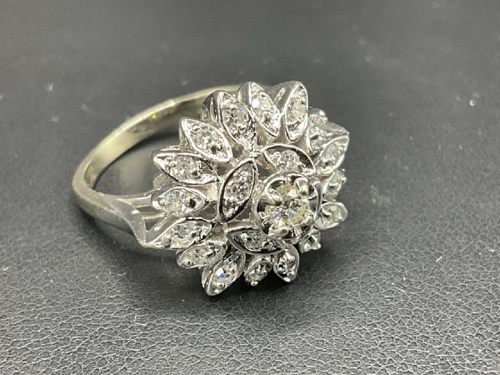 Estate Lady's 14K White Gold Diamond Cluster Ring.