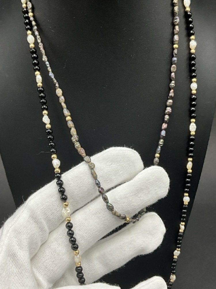 Two (2) Onyx and Pearl 14K YG Necklaces.
