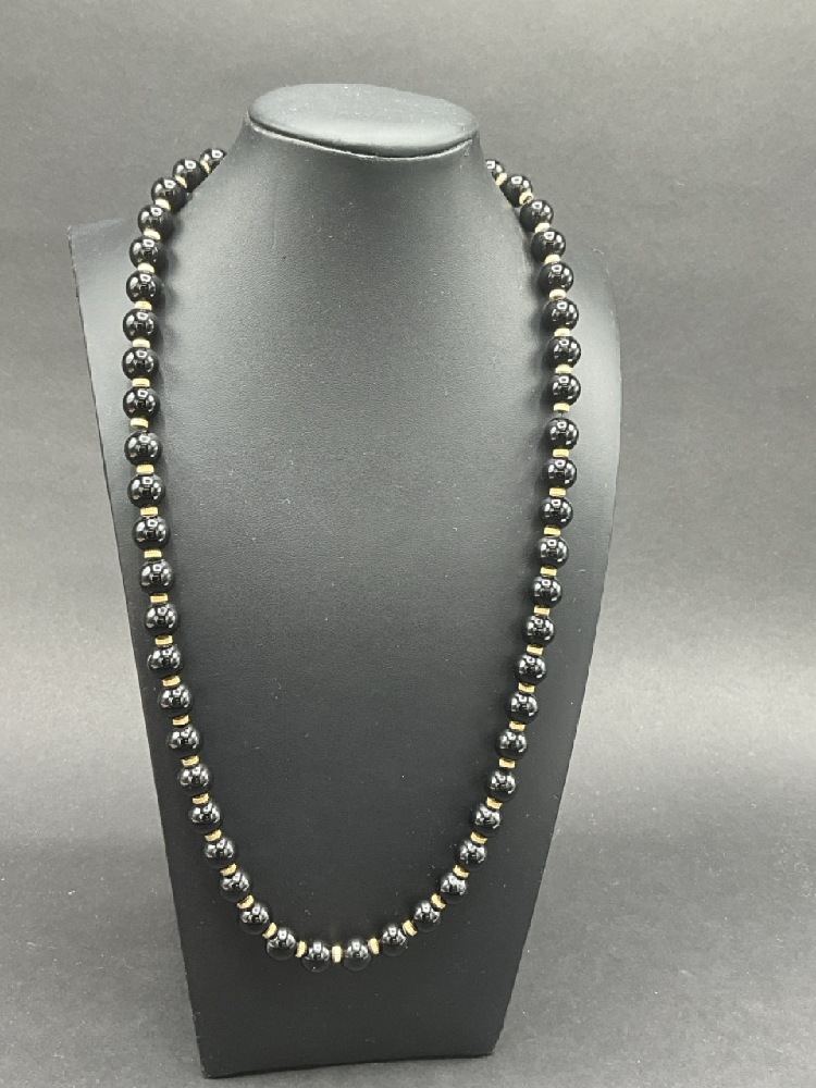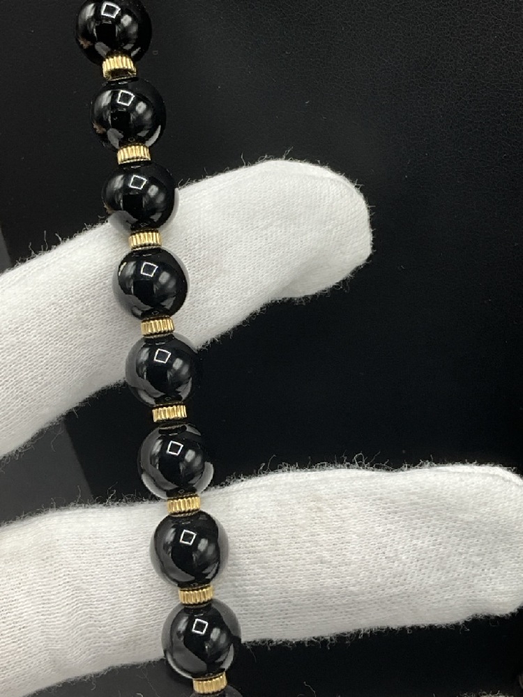 24” 14K Yellow Gold Black Onyx Bead Necklace.
