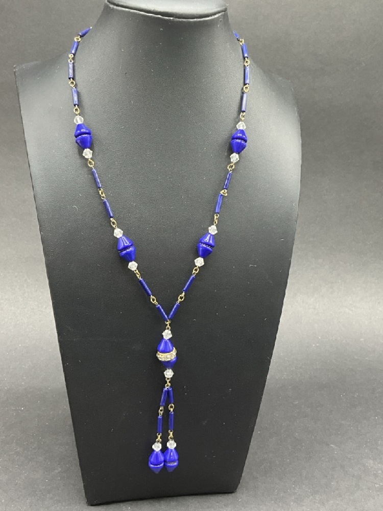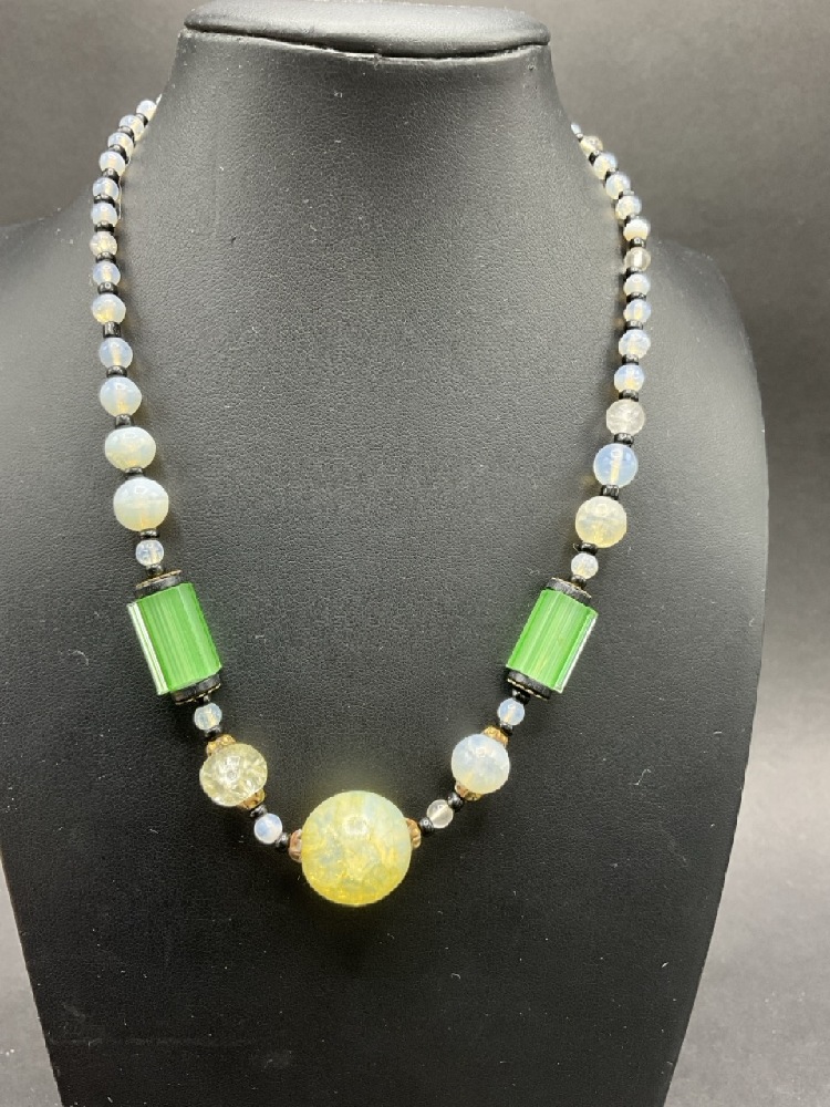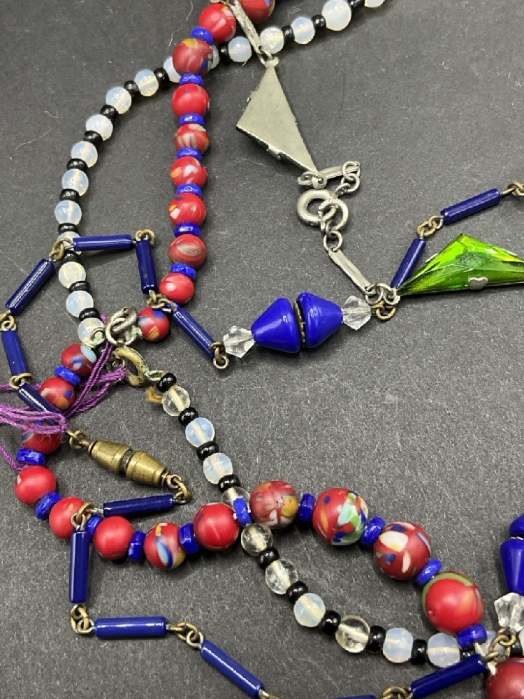 Four (4) Art Deco Glass Necklaces. Good condition. As seen in photograph preview.