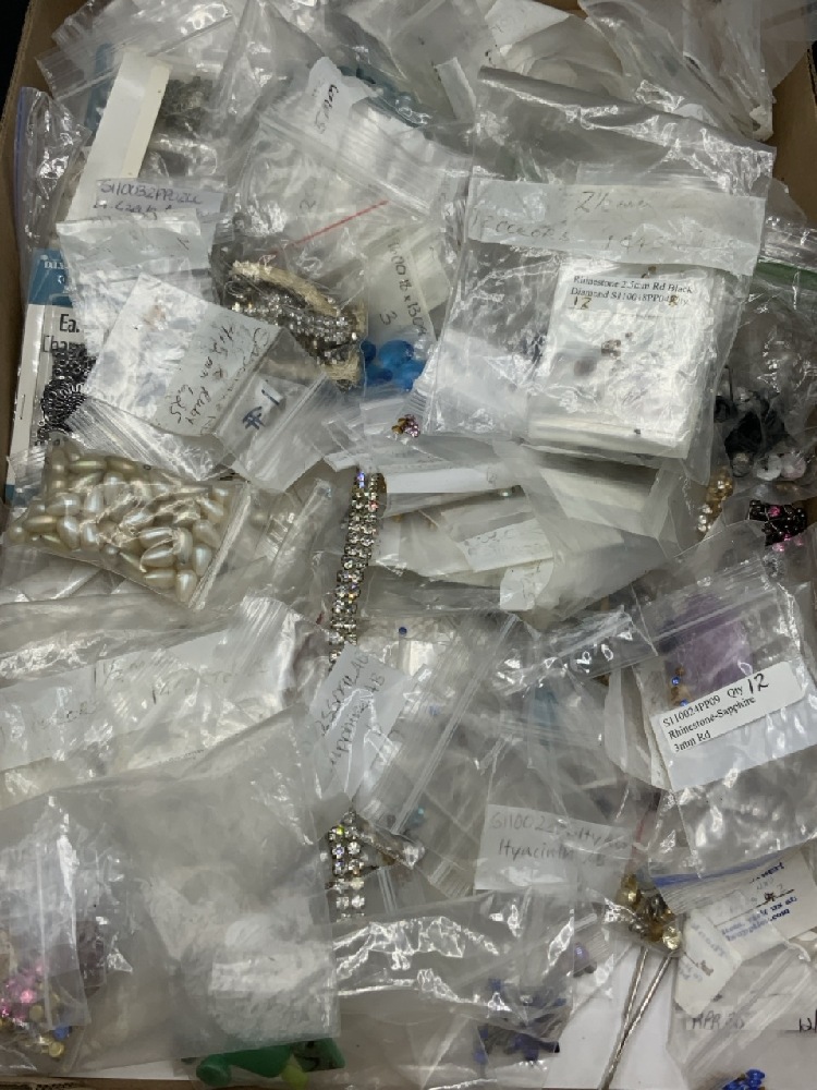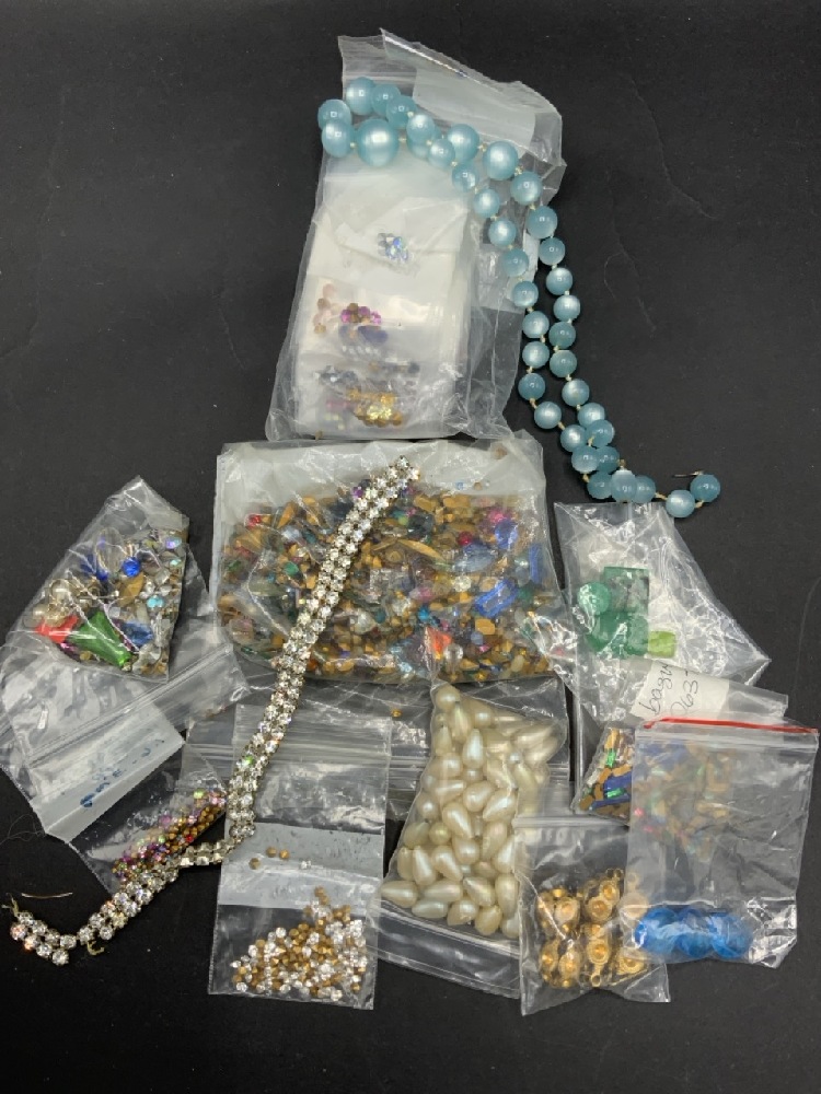 Large Vintage Repair Jewelry Lot w/ Rhinestones, Beads, Faux Pearls etc. Large quantity of bagged stones.