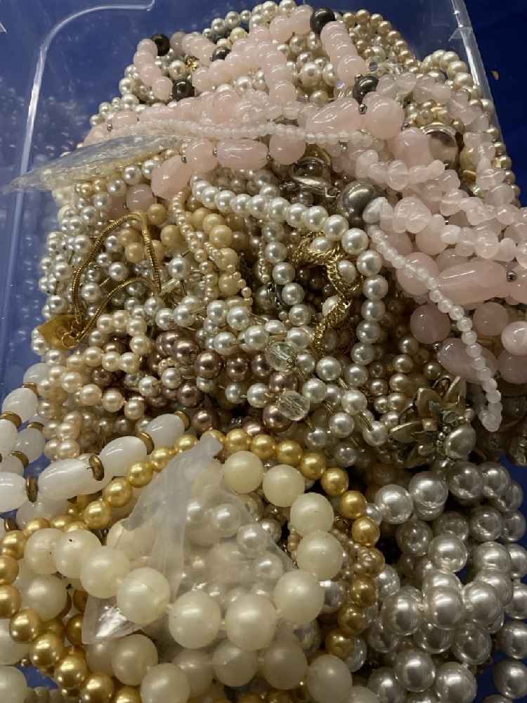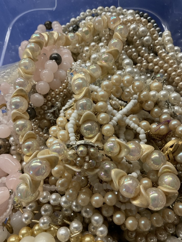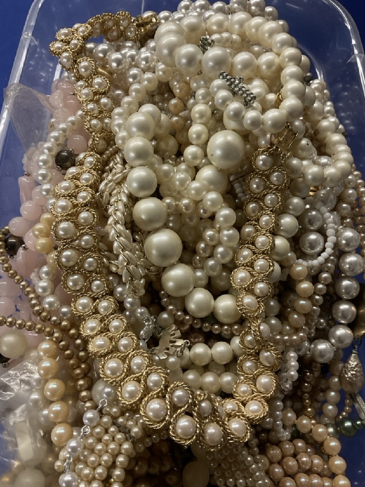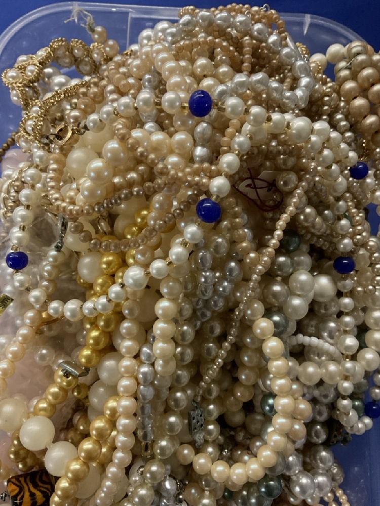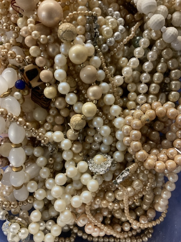 Large Costume Jewelry Lot of Faux Pearl Necklaces, Mostly Vintage. As seen in photograph preview.
