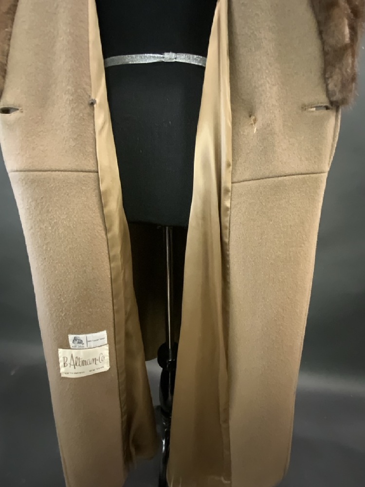 Bromleigh B.Altman & Co. Fifth Avenue New York Brown Wool Coat with Fur Lining