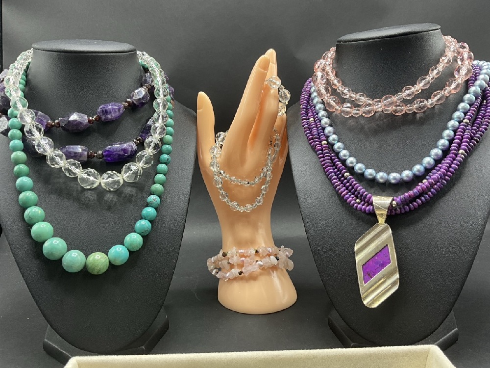 Gemstone and Crystal w/ Sterling Silver Jewelry Lot.
