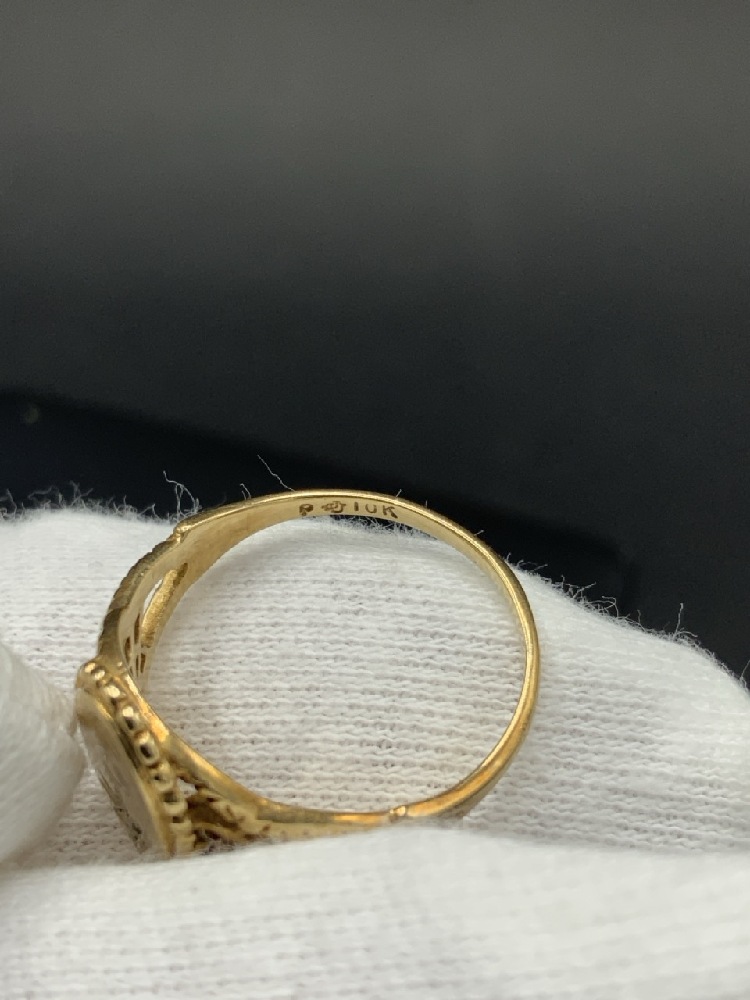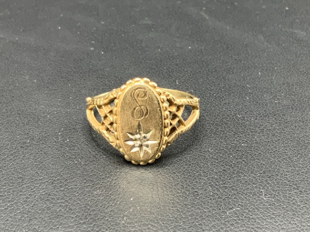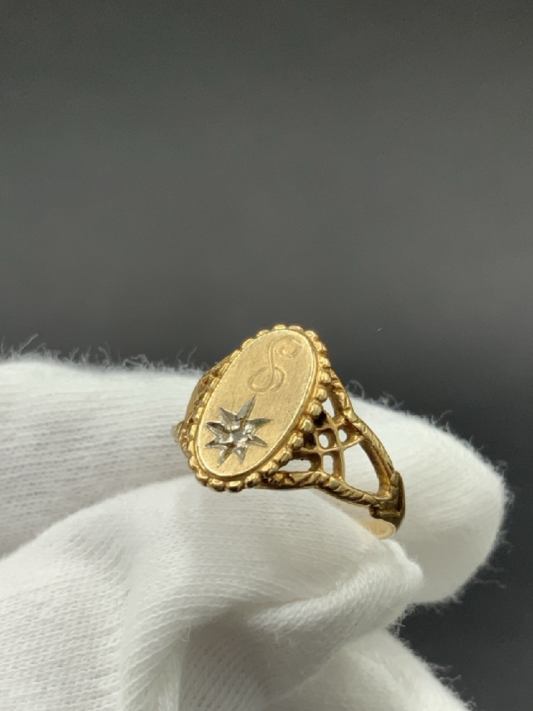 10K Yellow Gold Initial Ring with Diamond Chip.