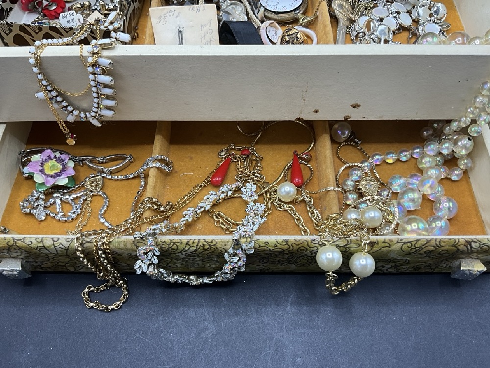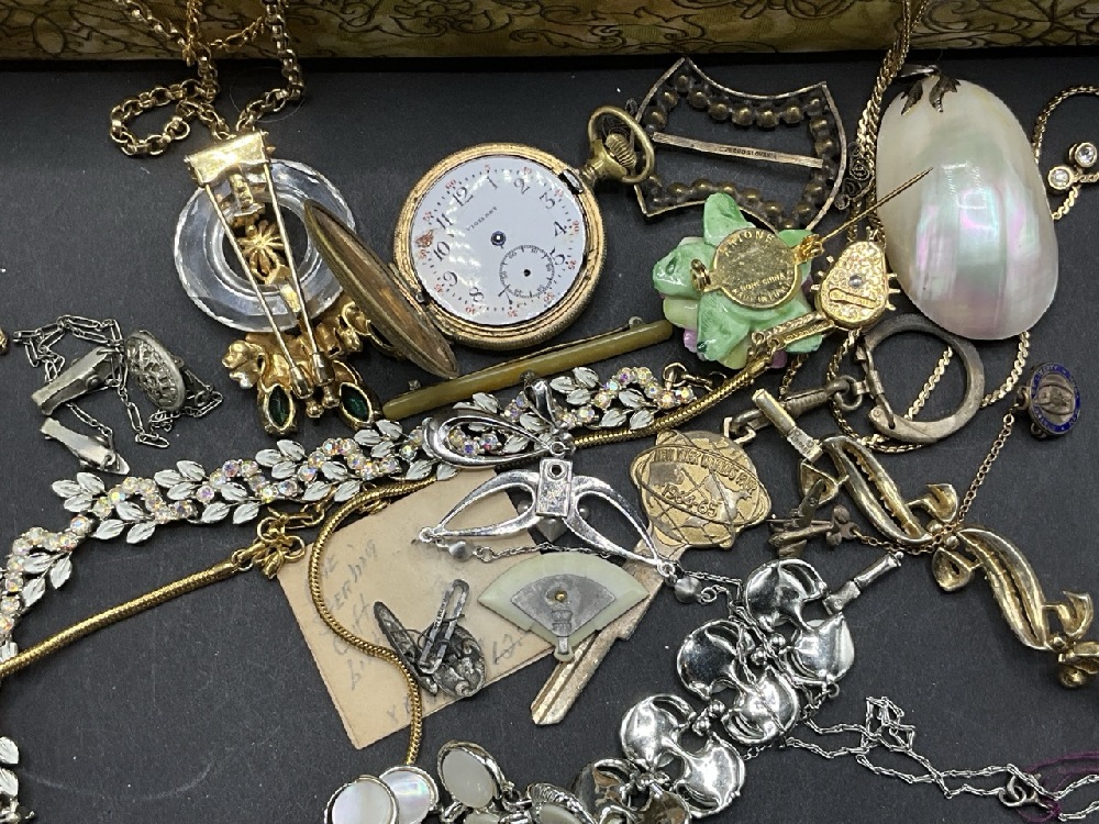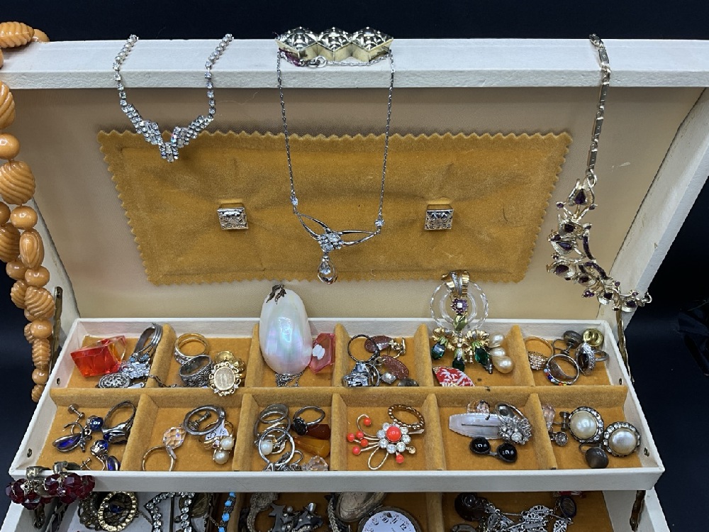 Large Vintage Costume Jewelry Lot w/ Jewelry Box - Sterling Silver, Coro, Crown Trifari, Vendome, Artone, Darius, Panetta etc.