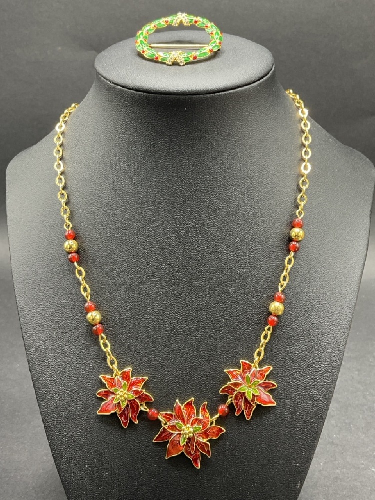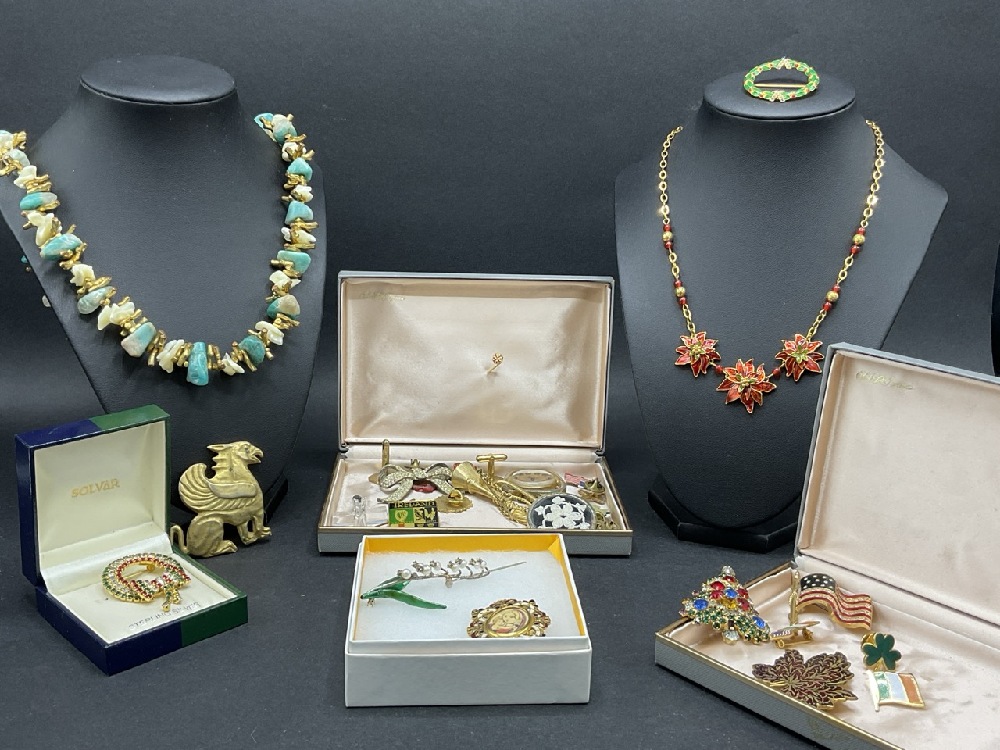 Designer Costume Jewelry Lot with MMA, Warner Rhinestone Christmas tree, Carolee and Sterling Silver/ MMA enameled Pin