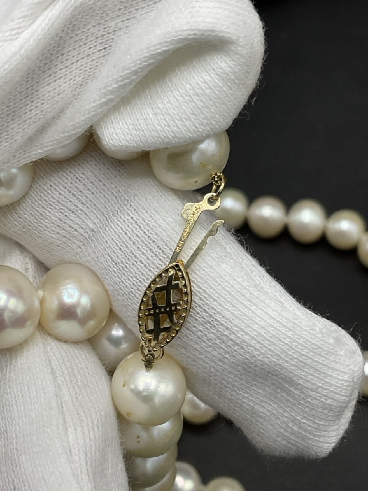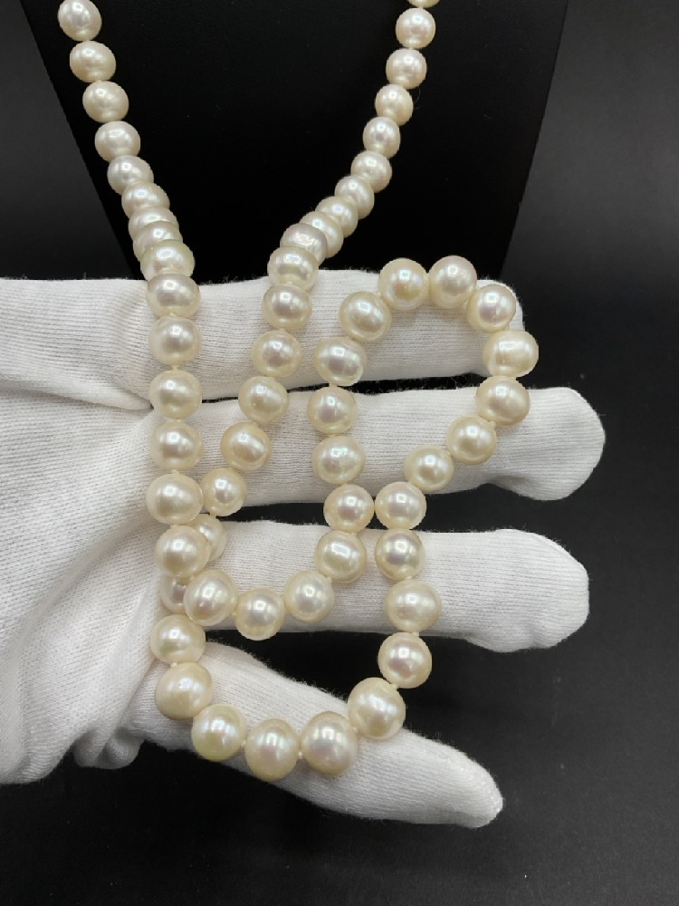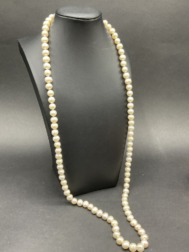 14K Yellow Gold Pearl Necklace. Can be doubled up or long single strand. 34" length.
