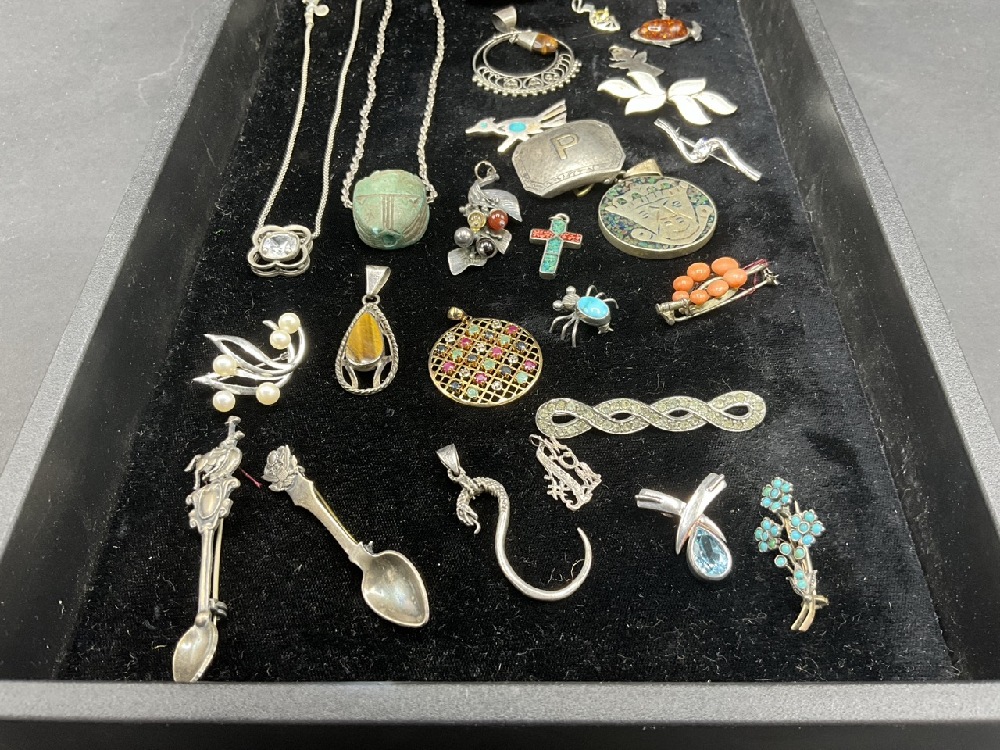 Sterling Pins/Pendants, Sterling/18K Belt Buckle.