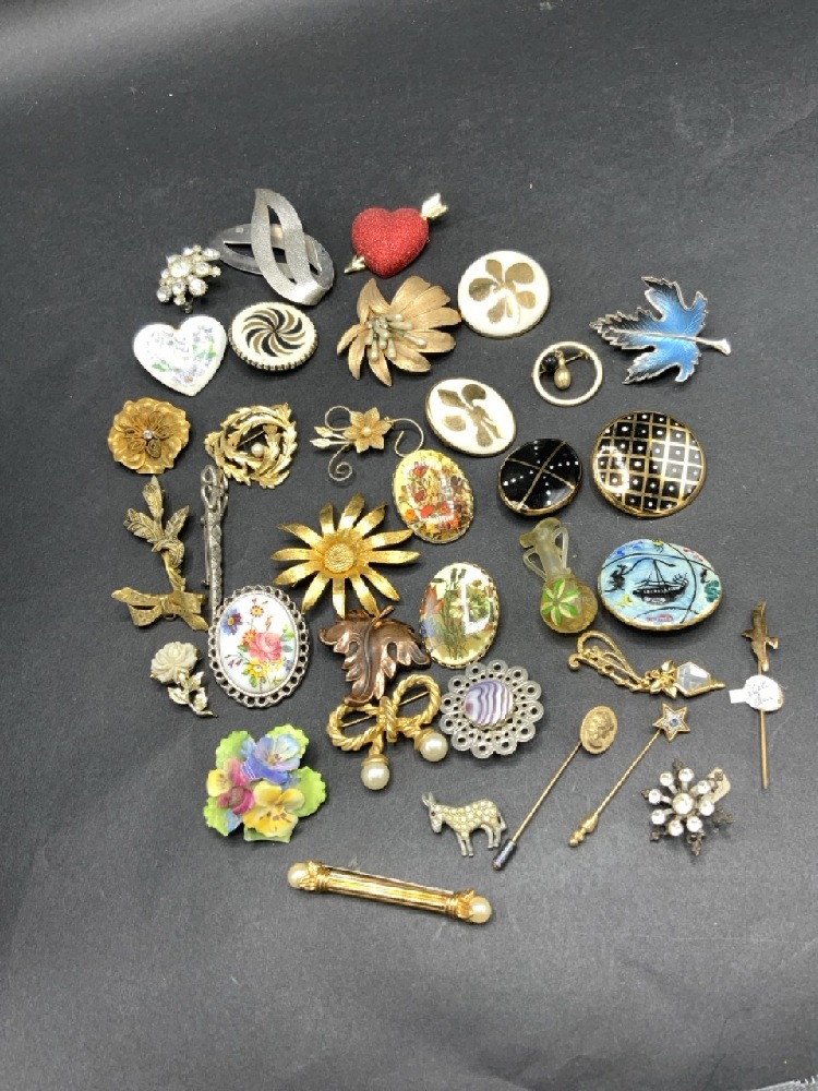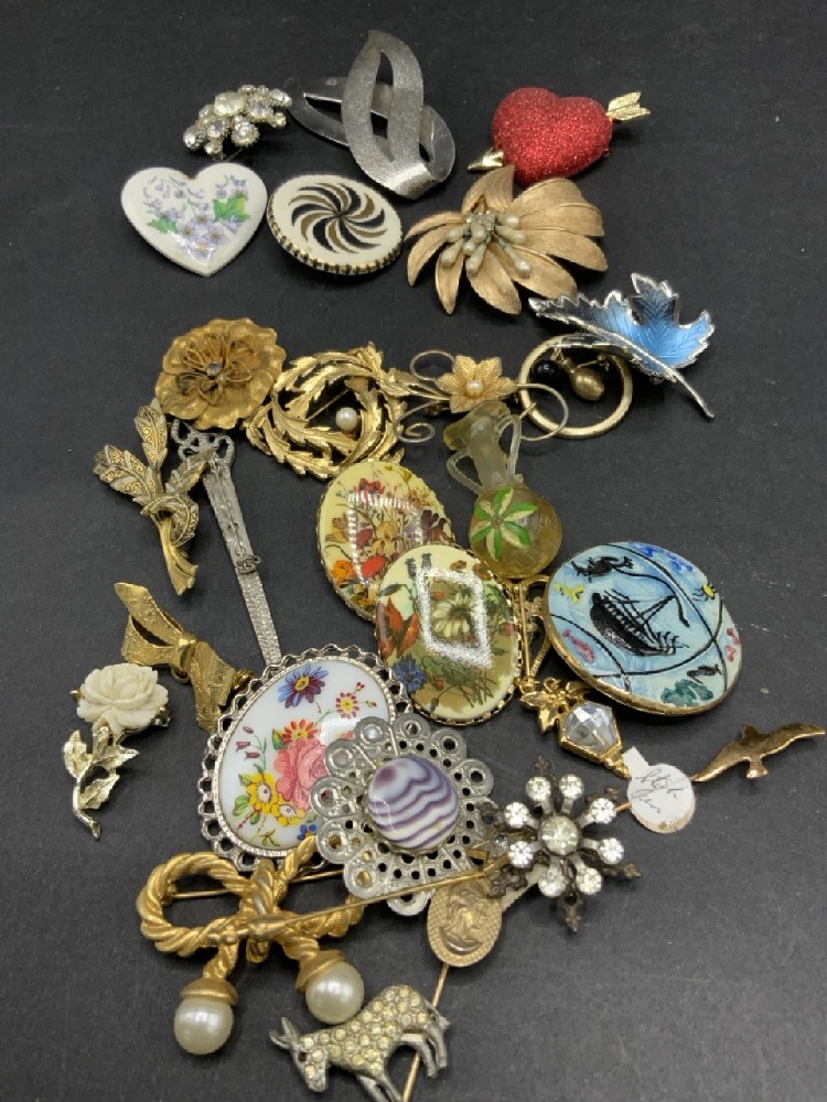 Vintage Costume Pin/Brooch Lot with Avon,Cremeance, Crown Shaffordshire etc. As seen in photograph preview.