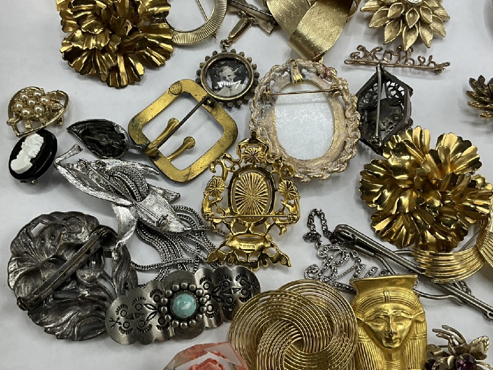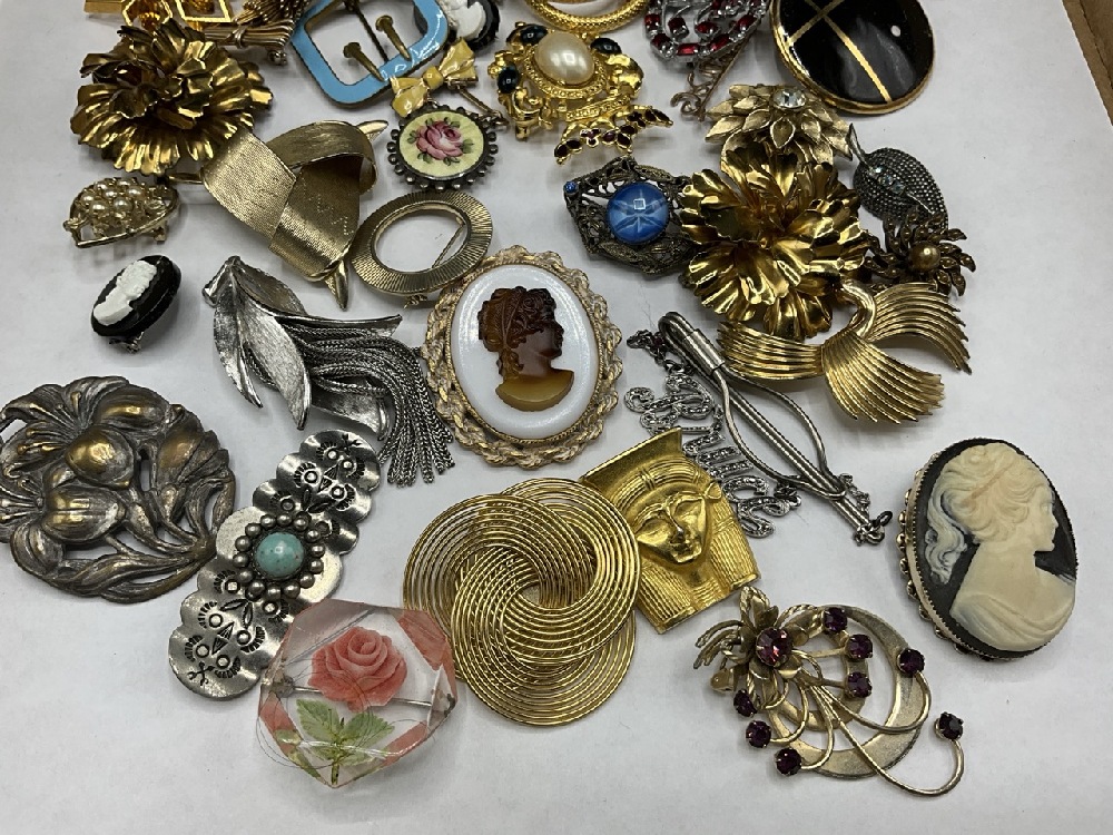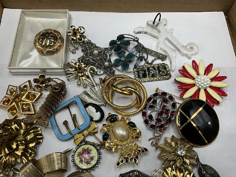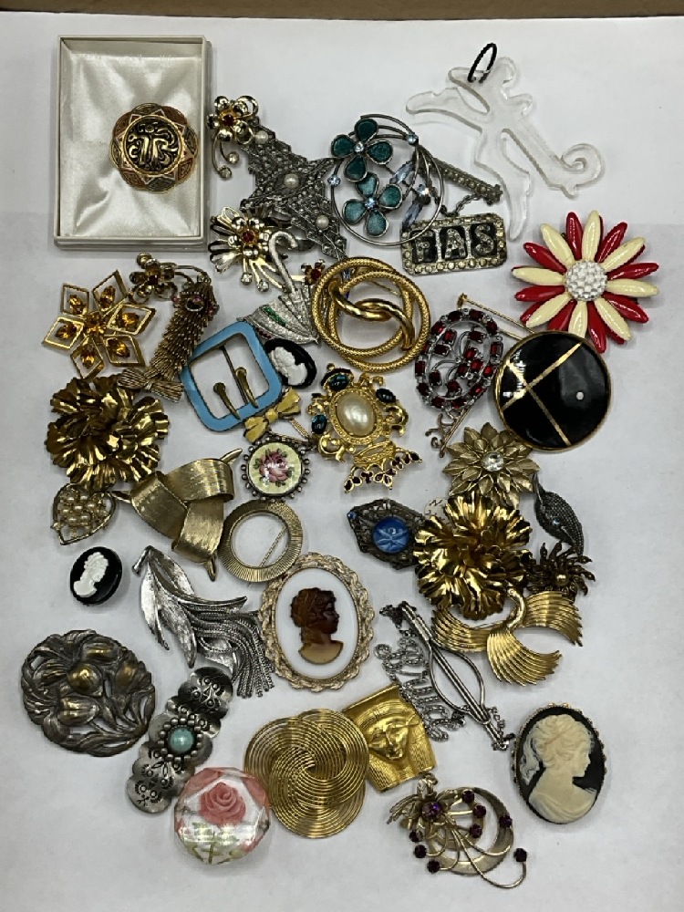 Estate Compiled Vintage Brooch/Pin Lot. Trifari, Lilly Flower St. Etc. As seen in photograph preview.