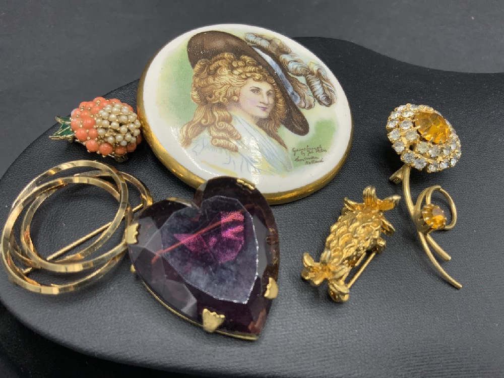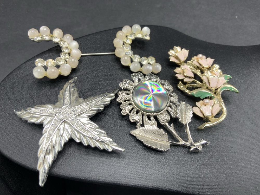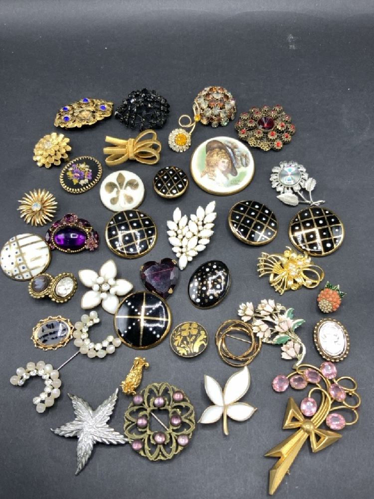 Estate Costume Pin/ Earring Lot with Jewelry, Roma, J.J., Ciner etc. As seen in photograph preview.