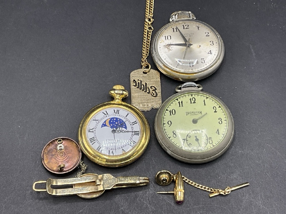 Men’s Curious Lot - Hadley, Hikock, Ingraham, Westclox. Cufflinks, watches, tie clips etc. As seen in photograph preview.