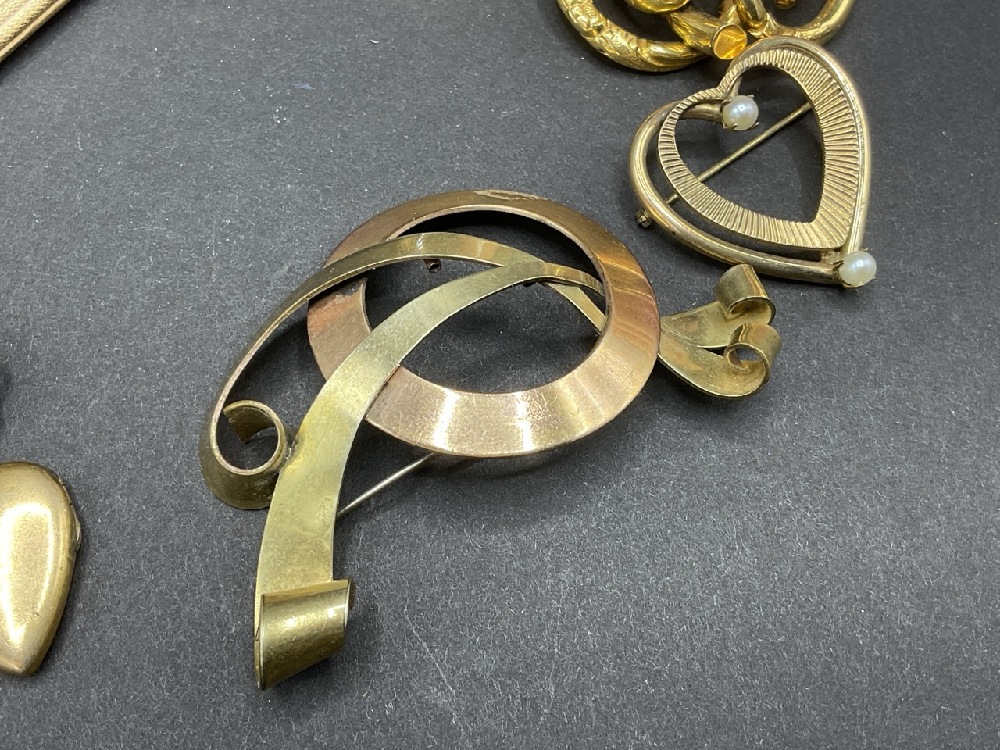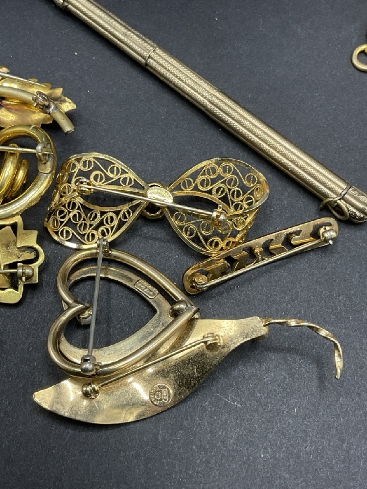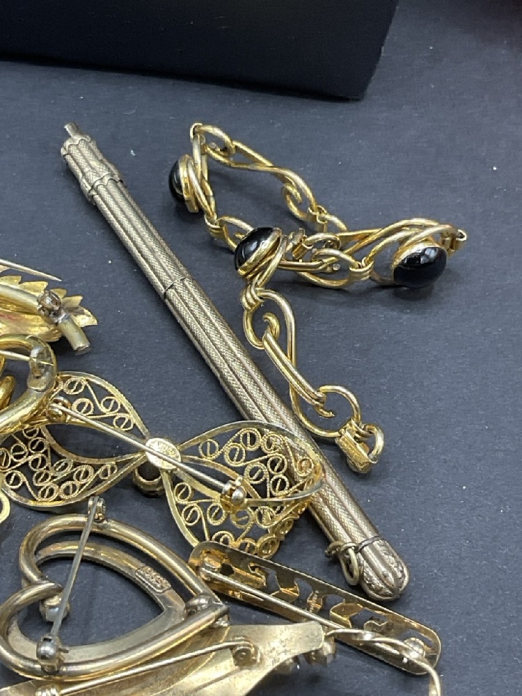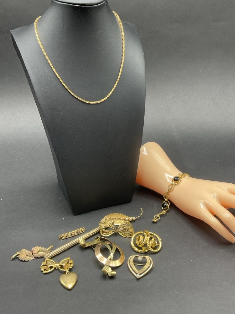 Compiled Gold Tone and Gold Filled Jewelry Group. Most pieces being marked for gold filled. As seen in photograph preview.