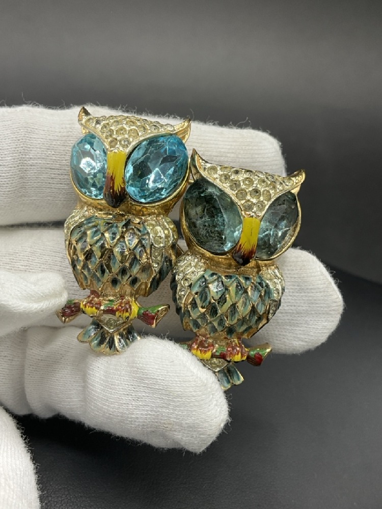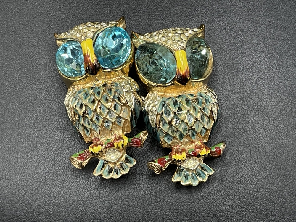 Coro Duette Sterling Silver Owl Clip Brooch.