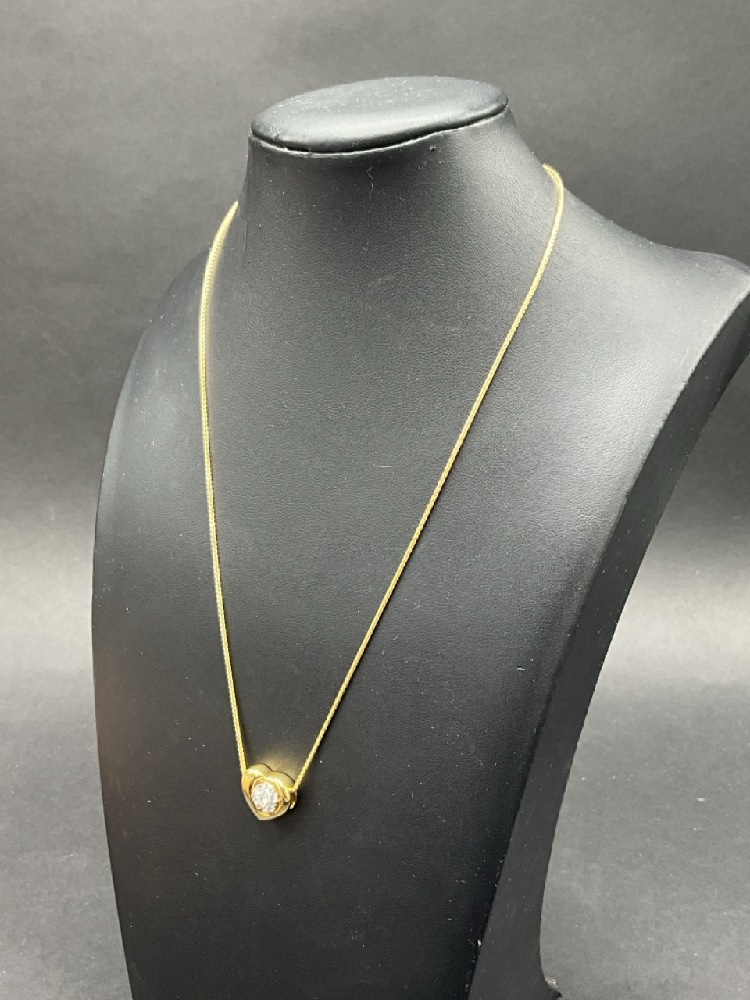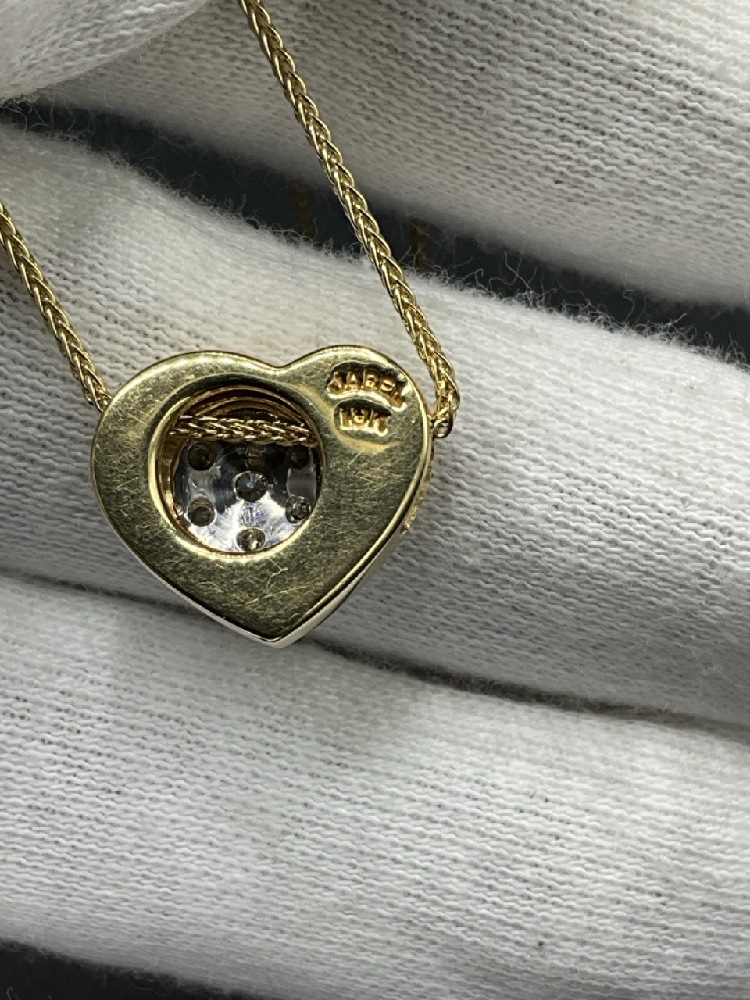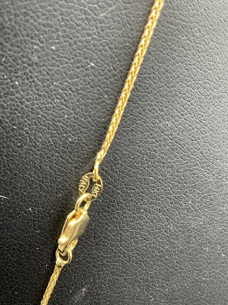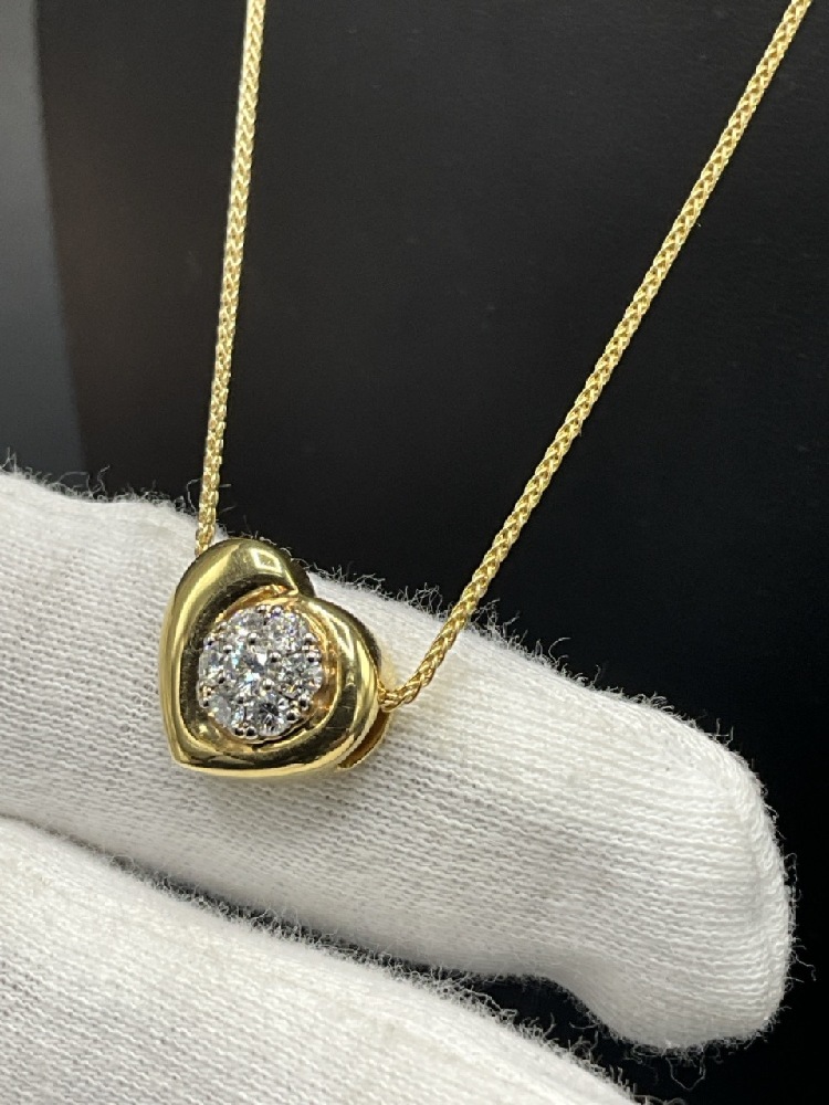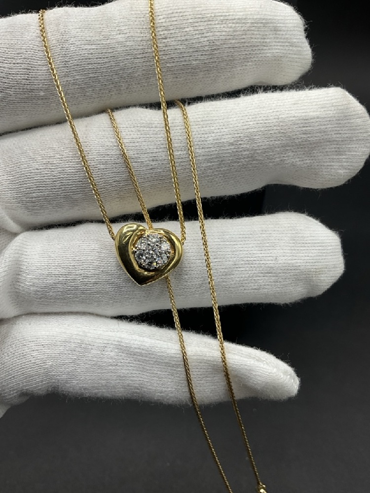 18K Sabel Yellow Gold Diamond Encrusted Slid Pendant with 14K Gold Necklace. Both pieces signed.