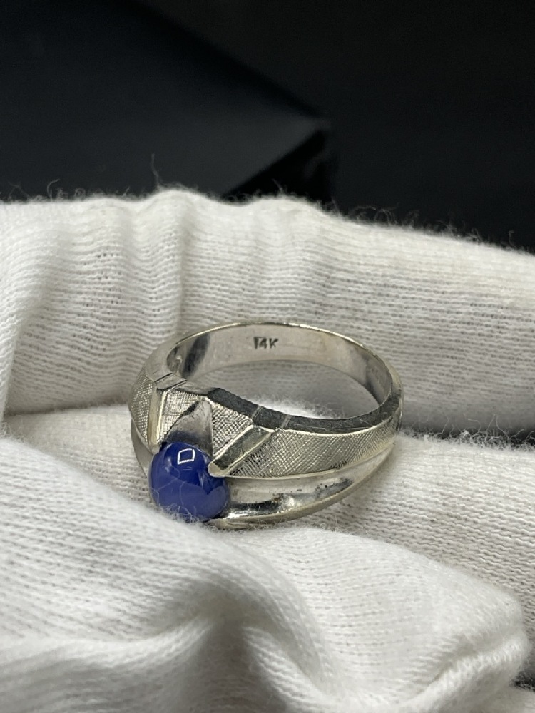 14K White Gold Men’s Star Sapphire Ring.