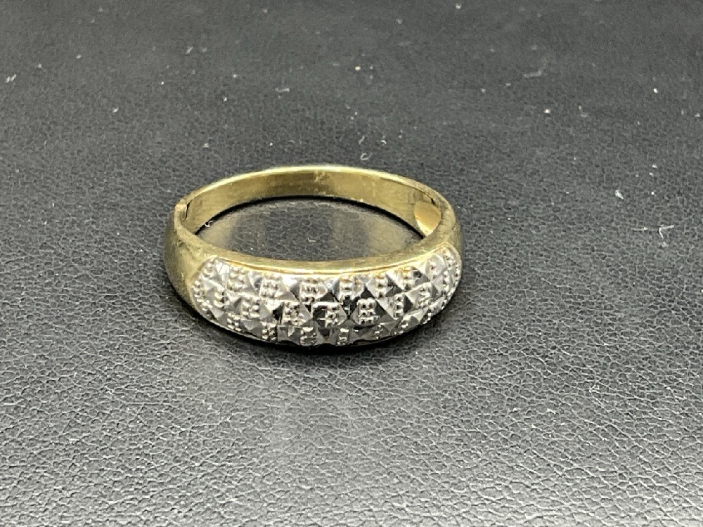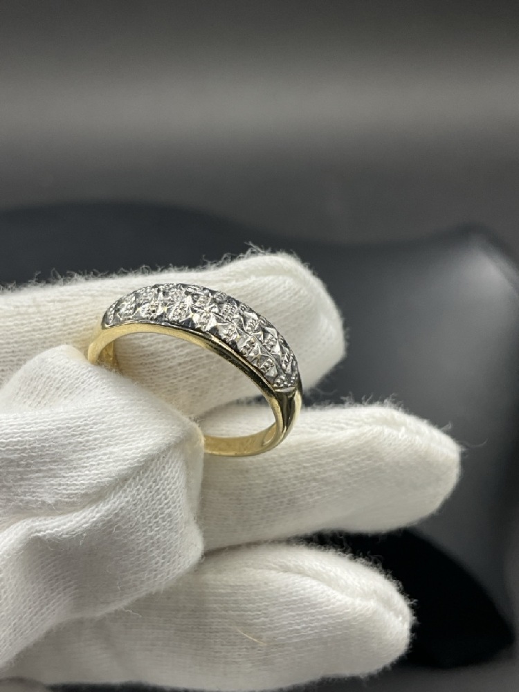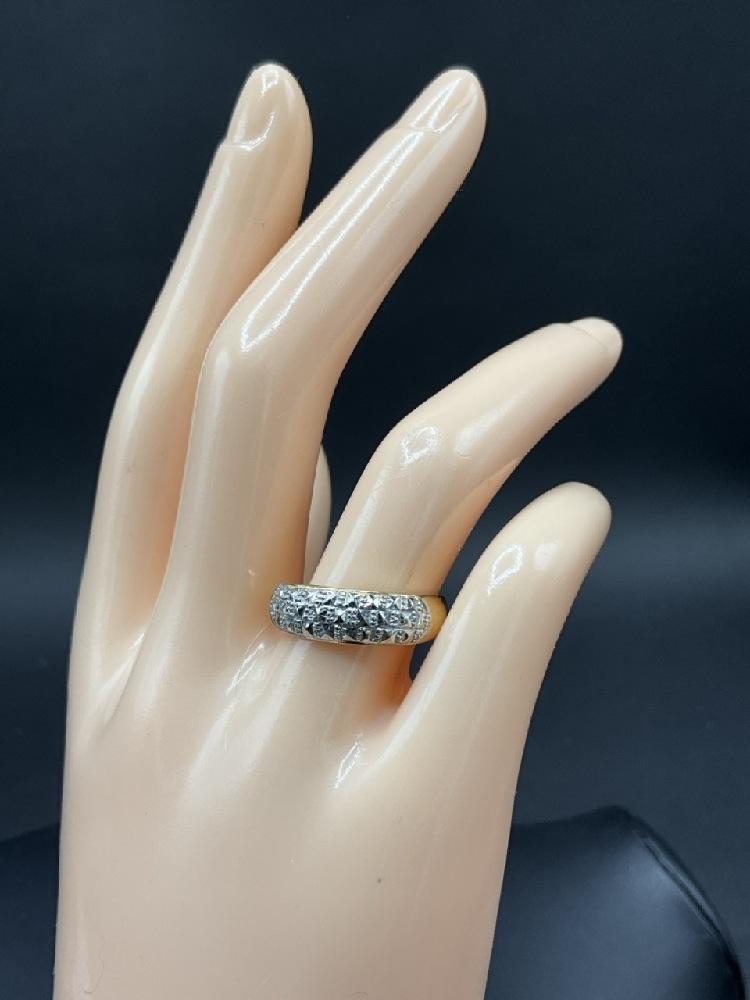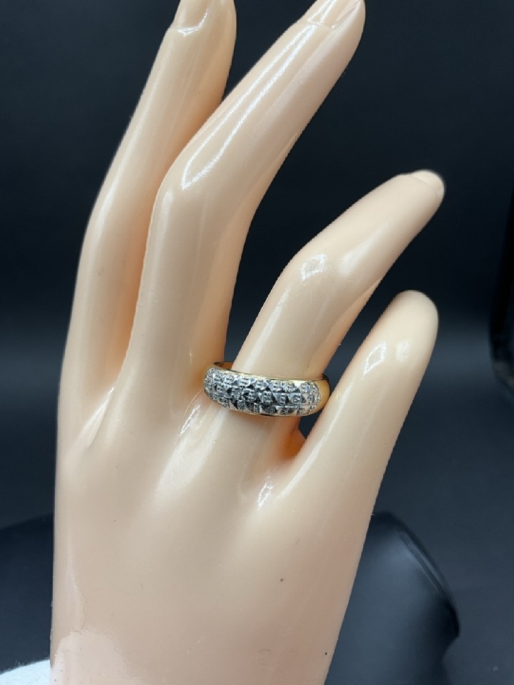14K White and Yellow Gold Ring with Small Diamonds. Signed Milor, Made in Italy.