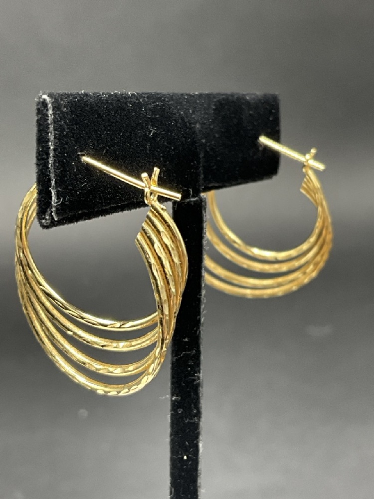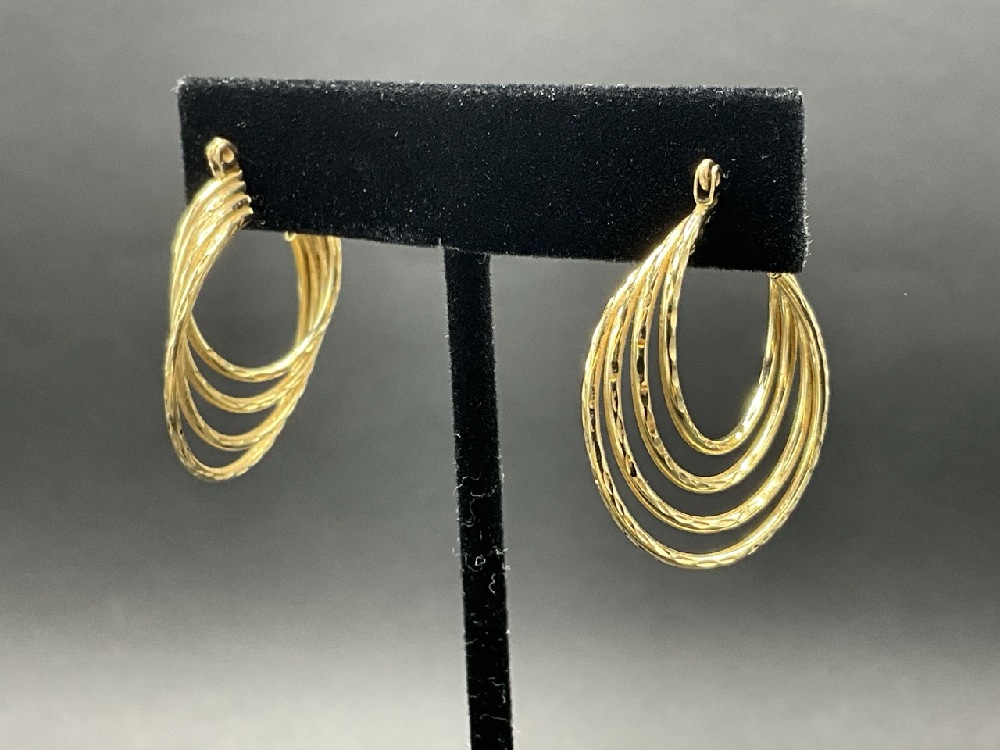 14K Yellow Gold Multi-Hoop Pierced Earrings.