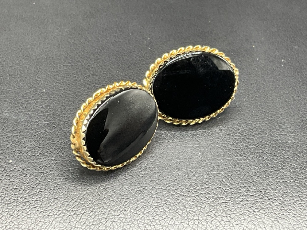 14K Pierced Onyx Earrings.