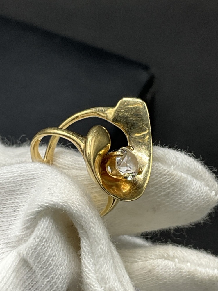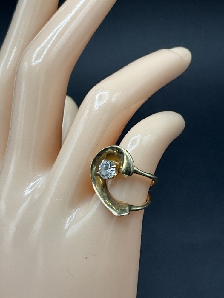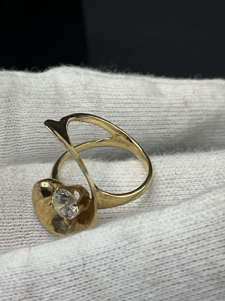 Modernist Style 14K Yellow Gold Ring. Cz stone.