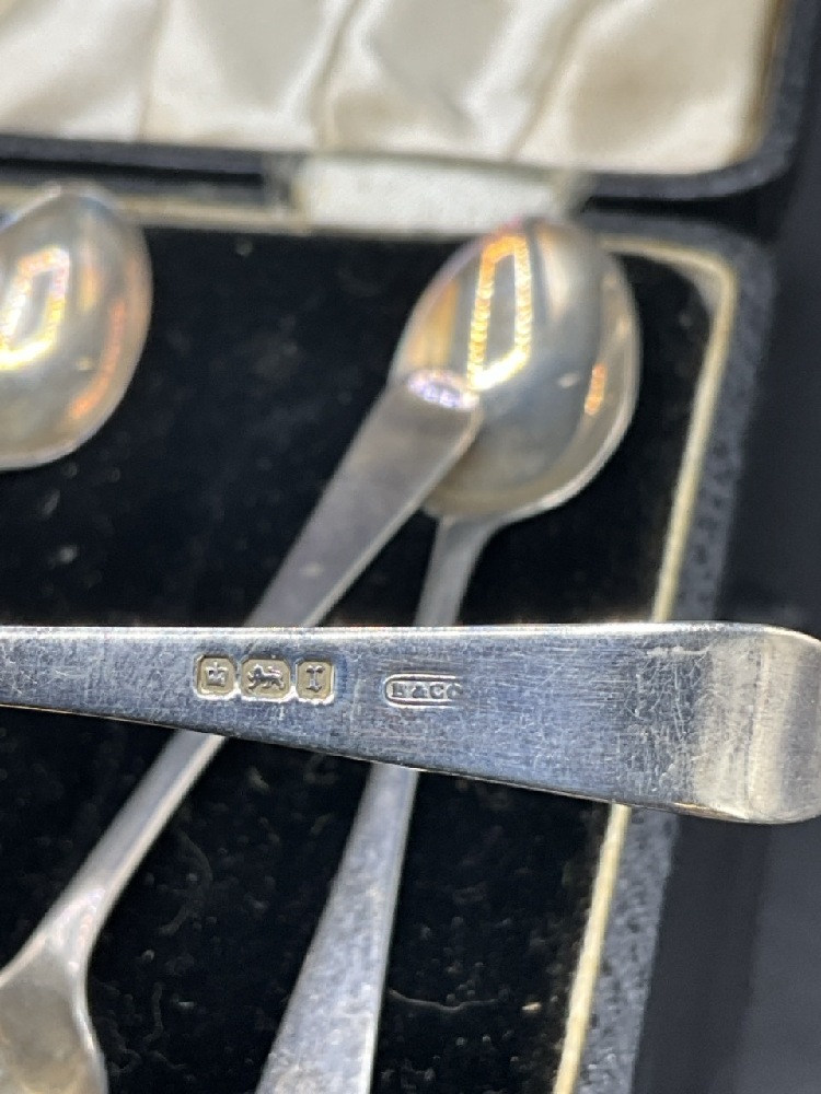 Six (6) English Sterling Silver Demitasse Spoons. Housed in original box.
