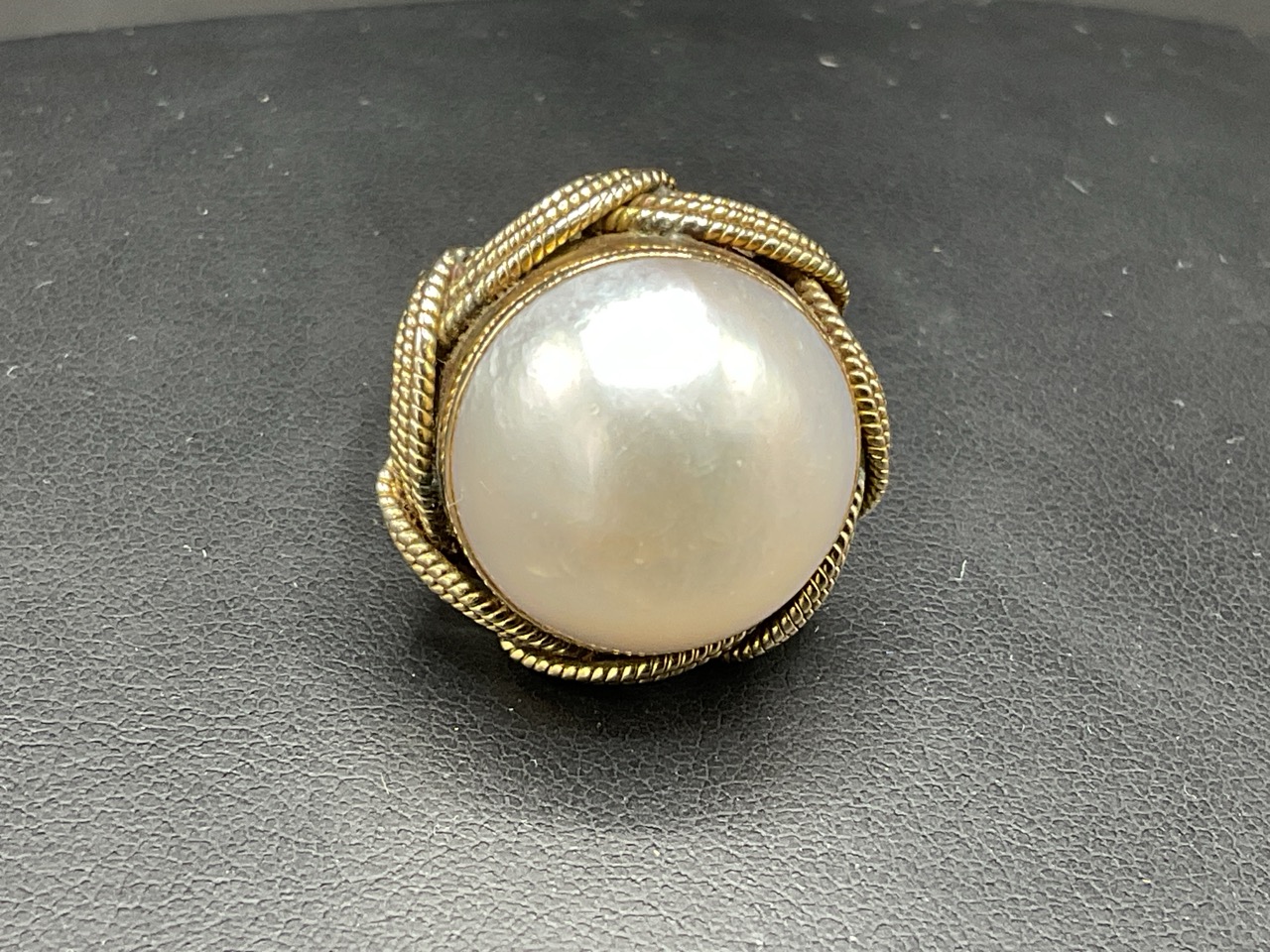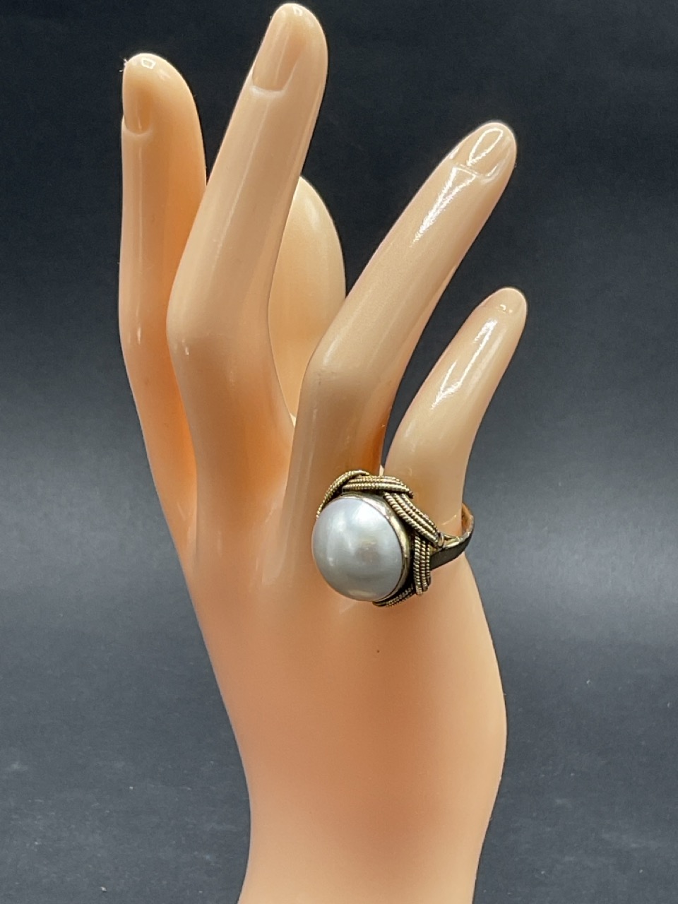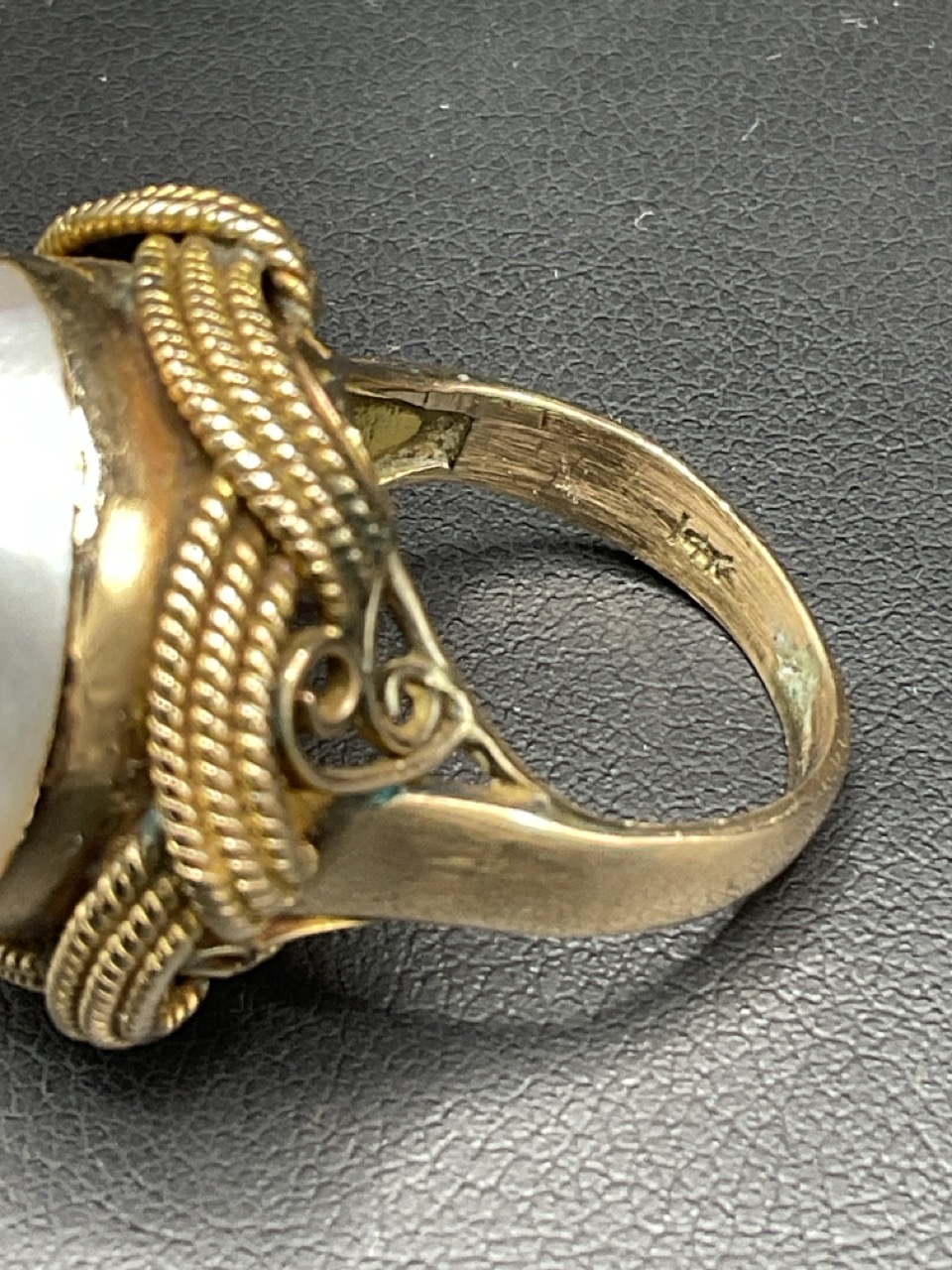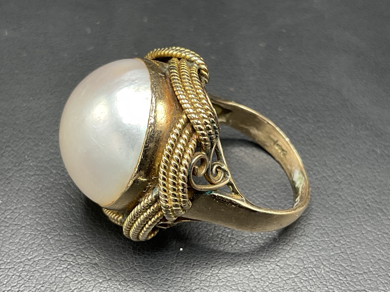 14K Yellow Gold Mabe Pearl Cocktail Ring.