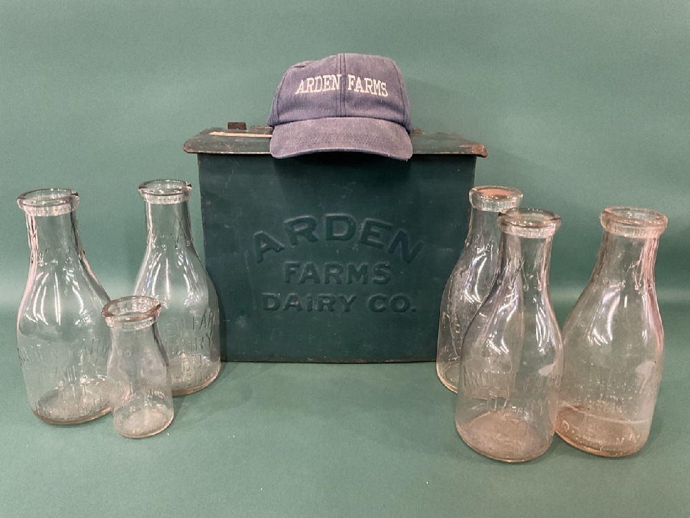 Arden Farms Memorabilia. Incluidng Milk Box, Bottles and Hat. Harriman, New York