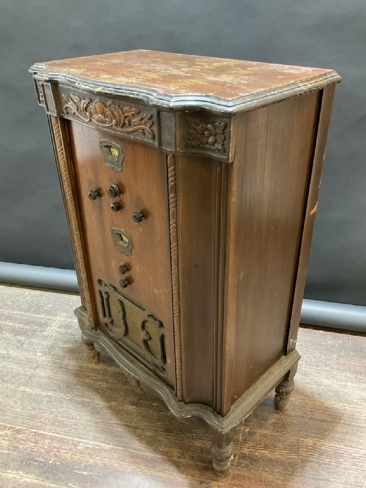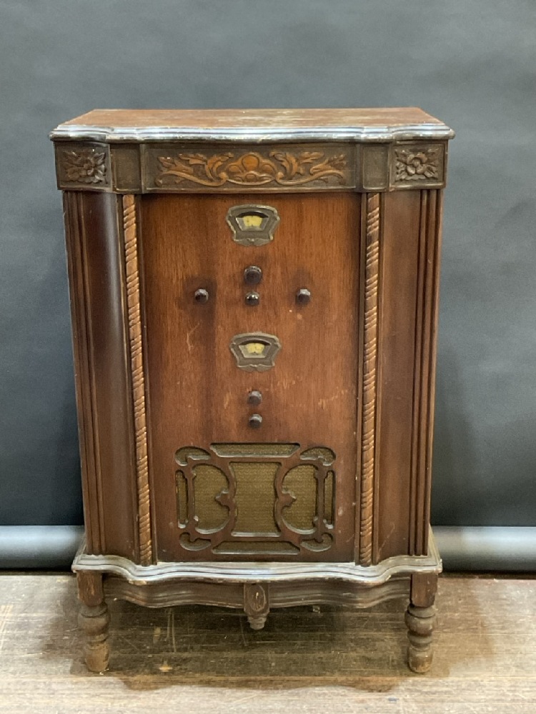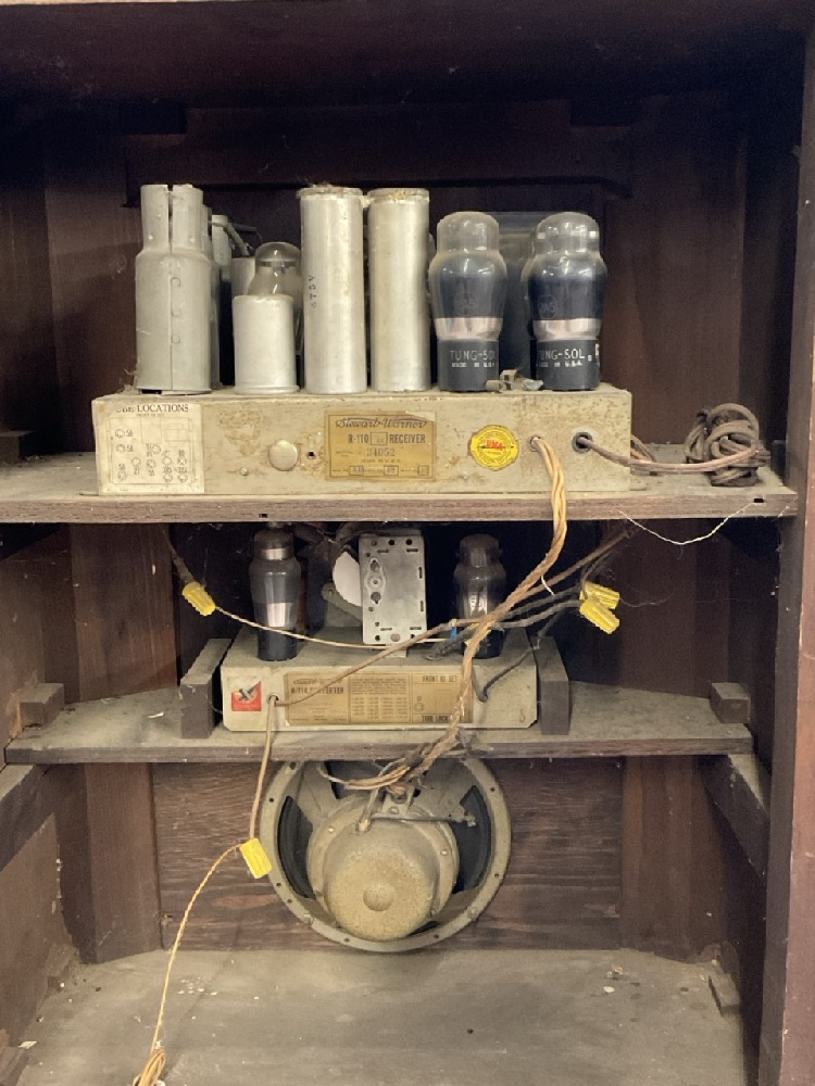 Stewart Warner R-110 Radio and R-114 Shortwave Converter Both Mounted in Console Cabinet Circa 1933.