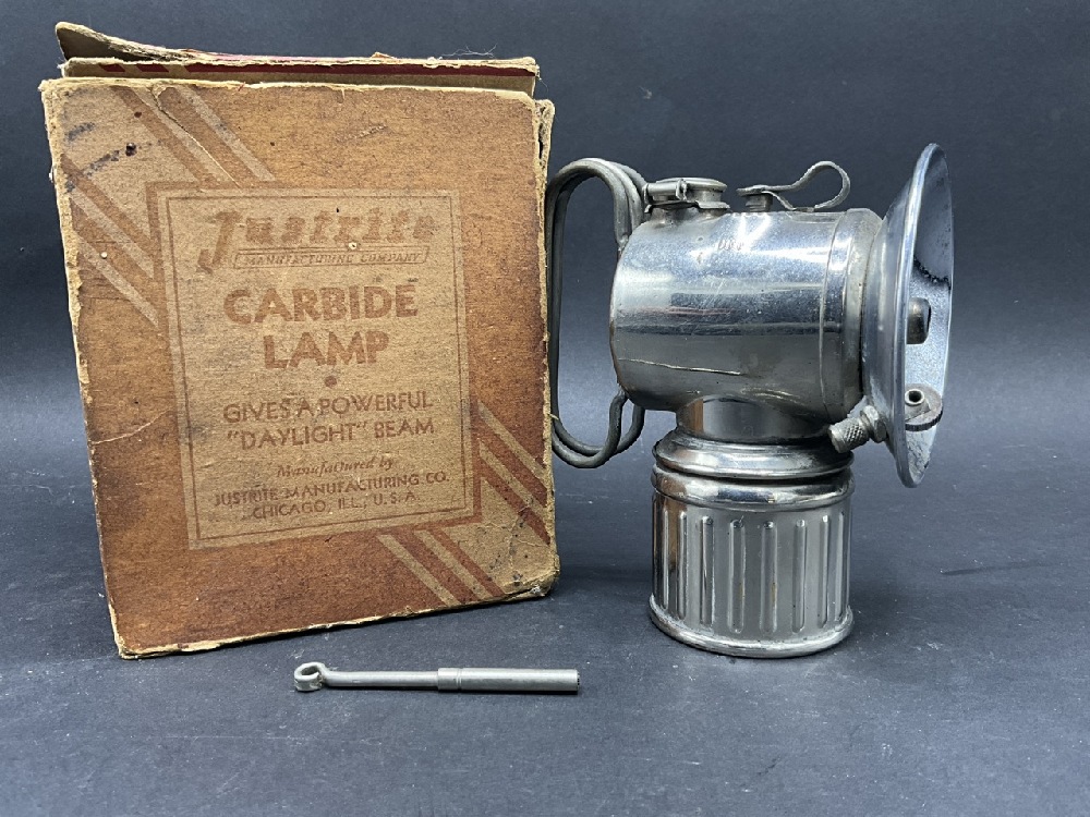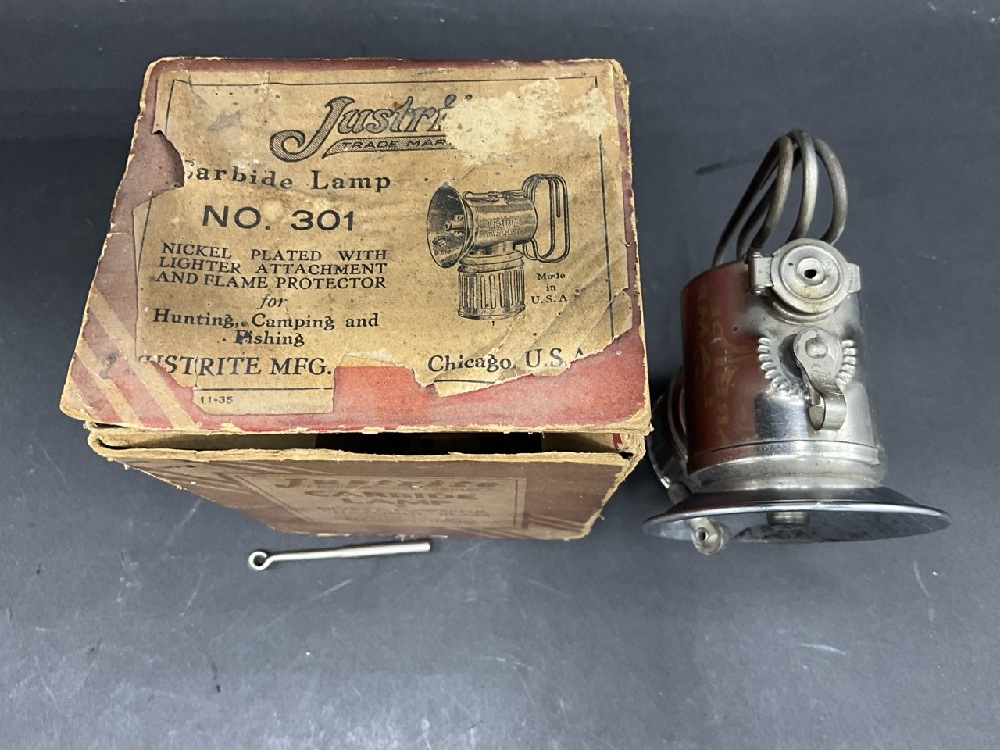 Justrite #301 Nickel Plated Handheld Carbide Lamp W/ Original Box.