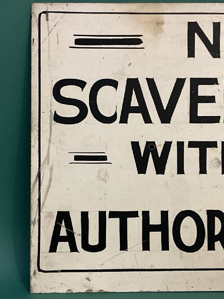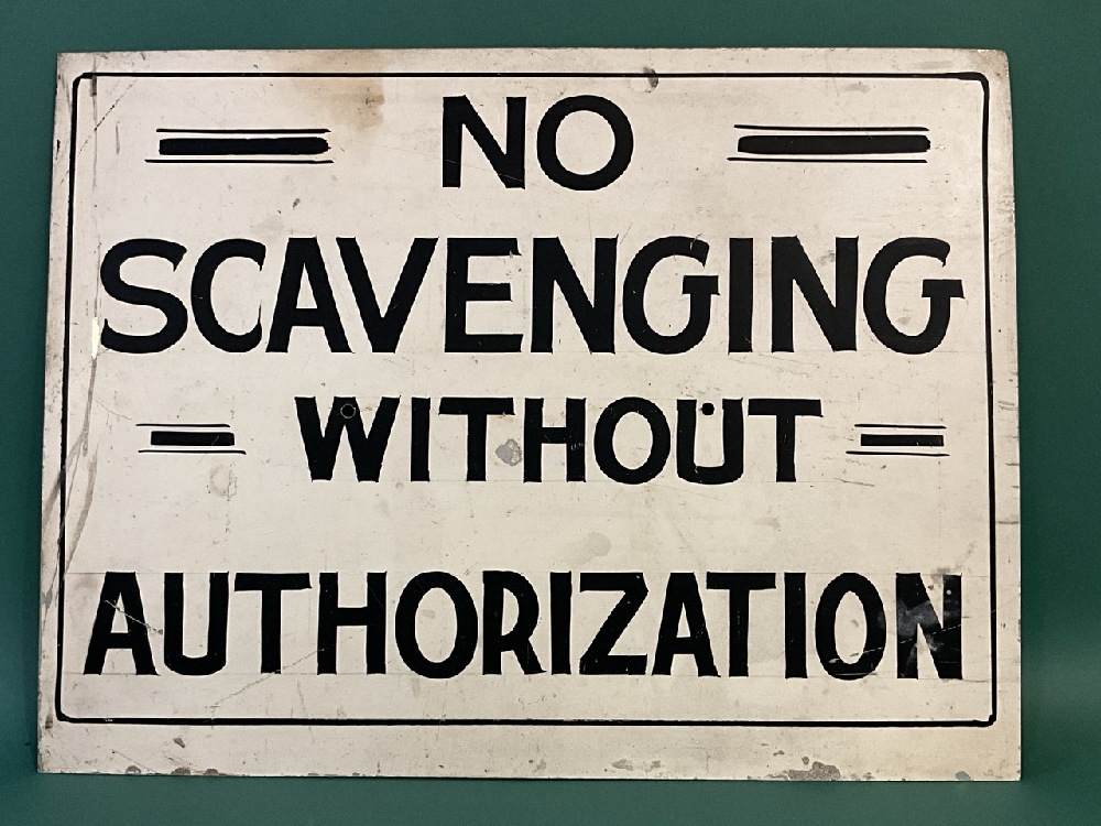 Vintage “ No Scavenging Without Authorization “ Aluminum Sign