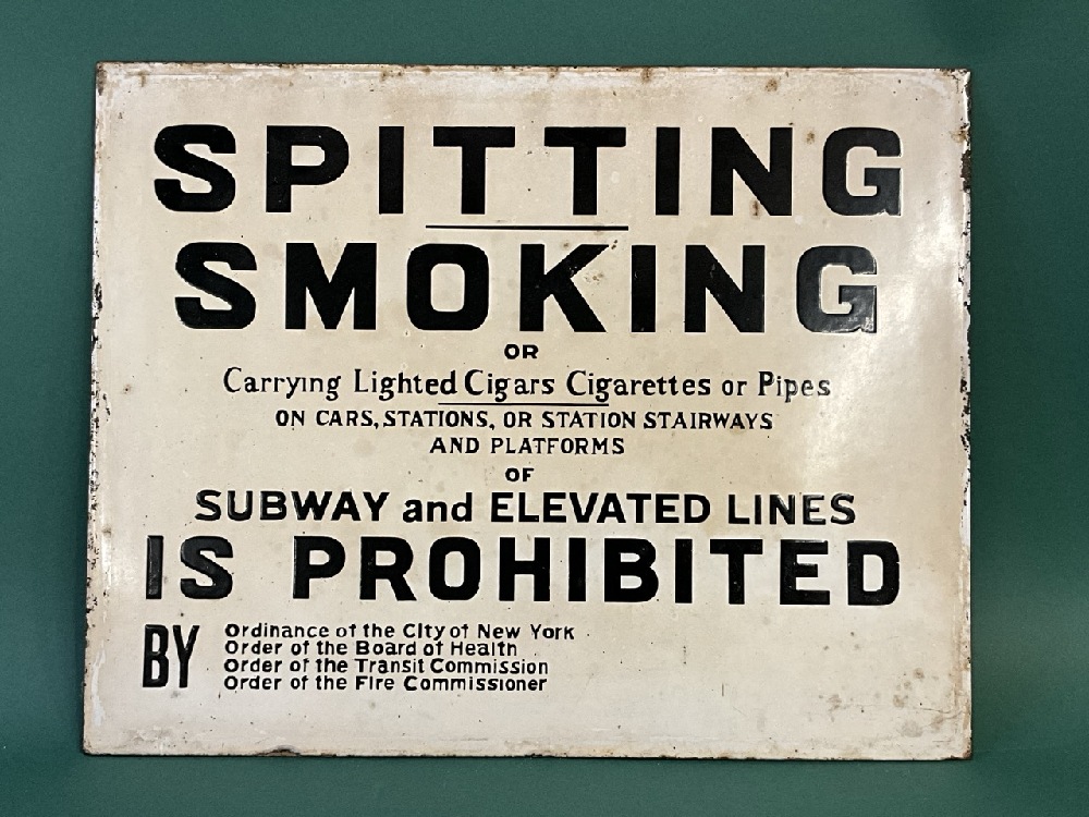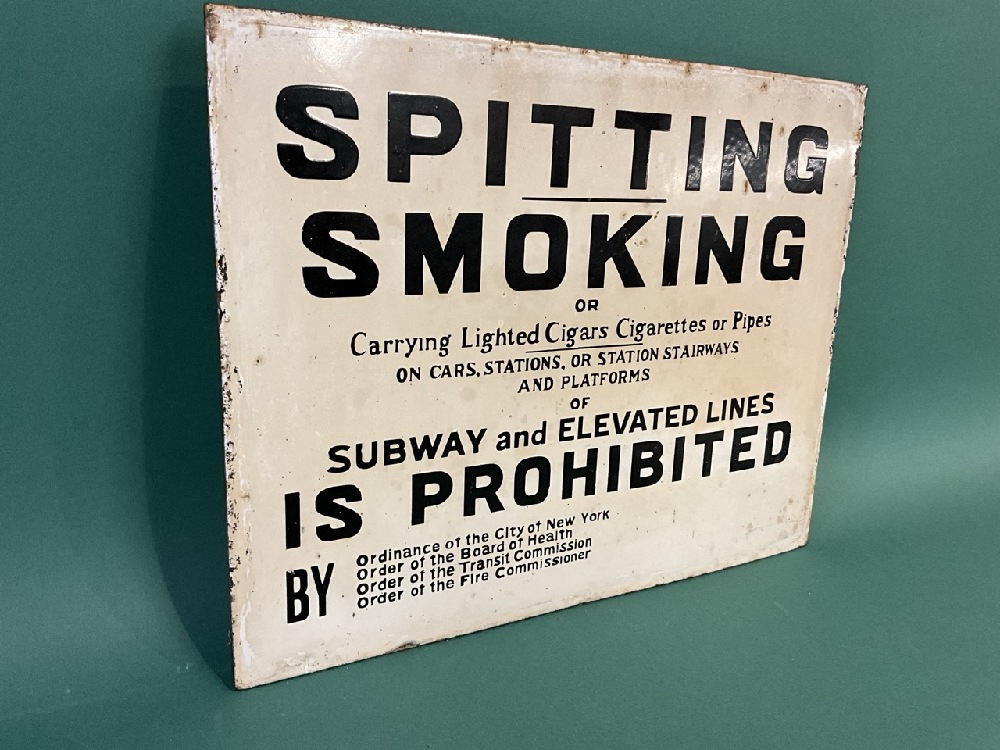 Porcelain Sign “Spitting Smoking Prohibited “ New York City Subway. Original.