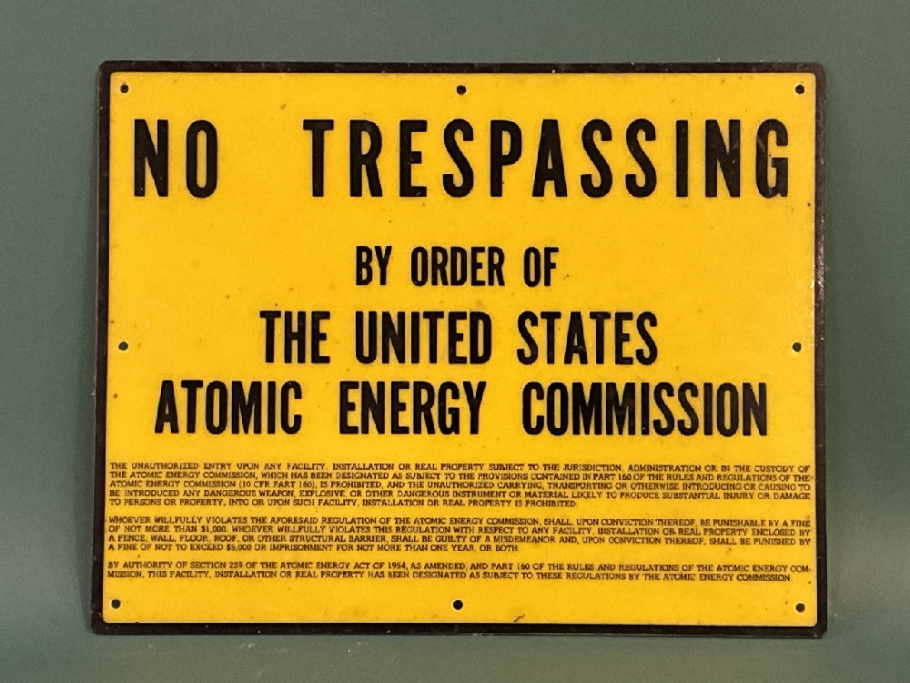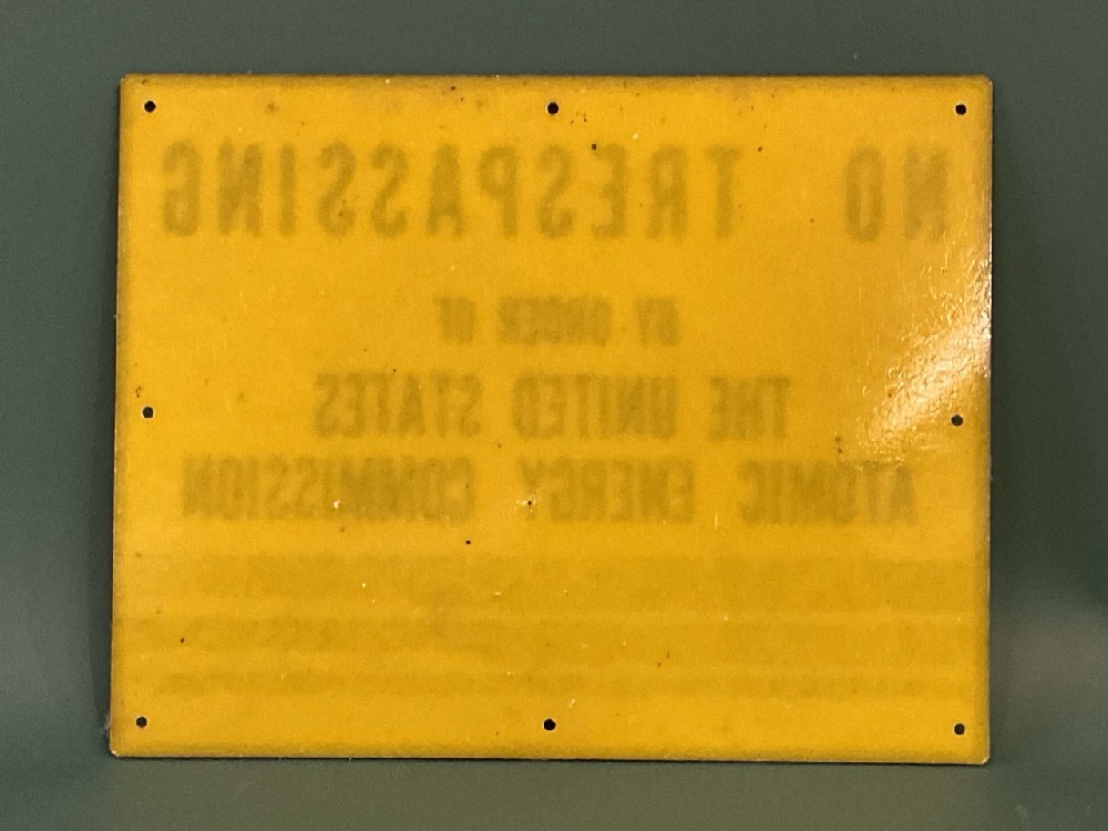 Yellow Plastic Atomic Energy Commission Sign C. 1950’s