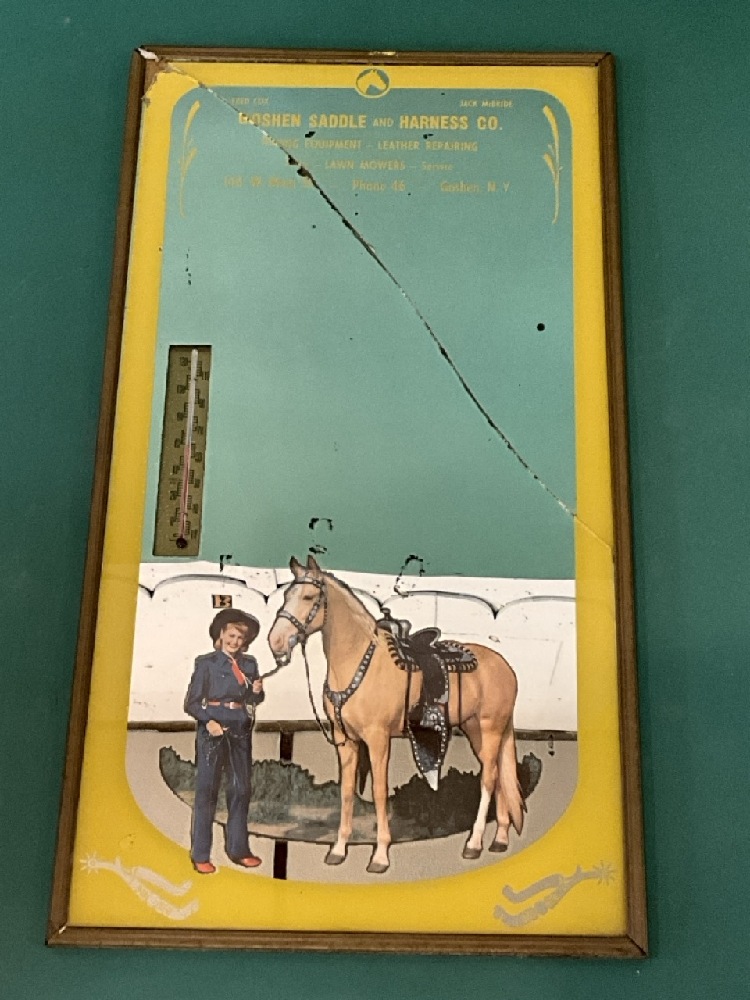 Goshen New York Saddle and Harness Co. Advertising Mirror.