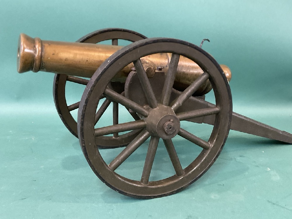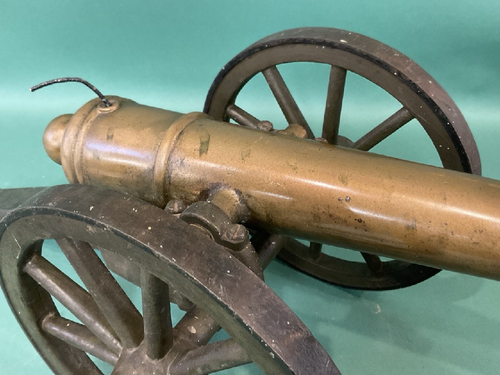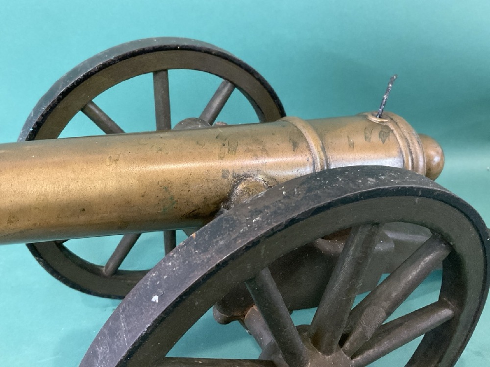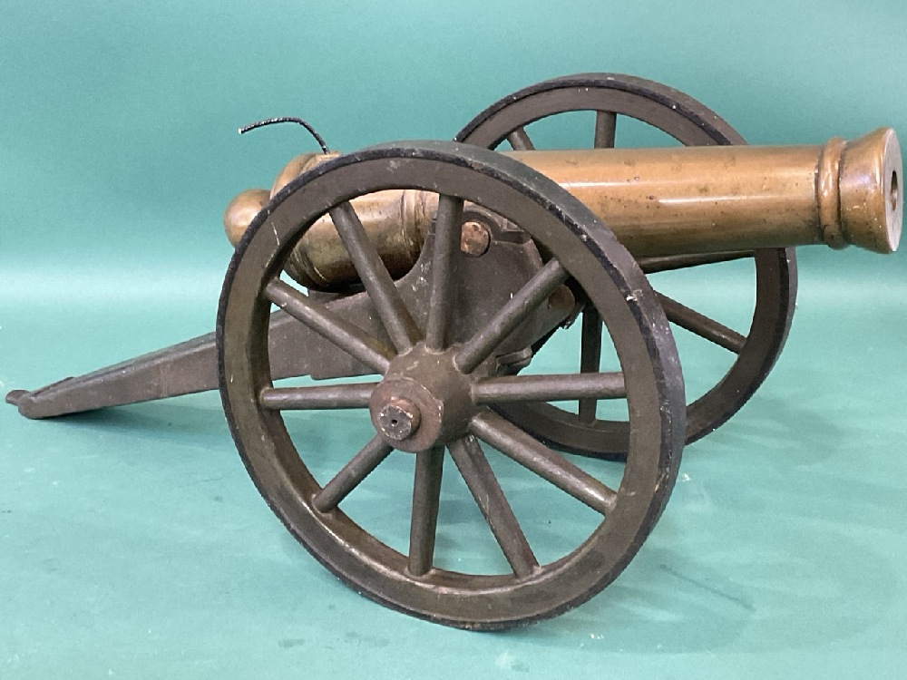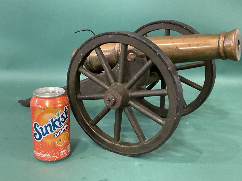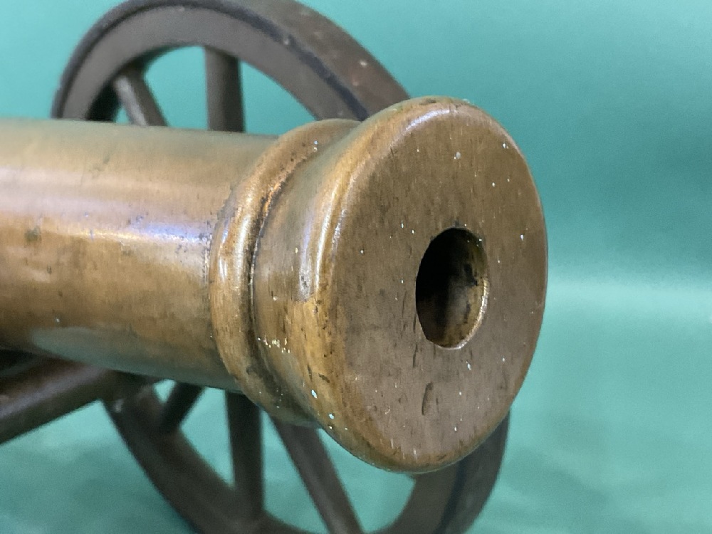 Bronze Barrel, Cast Iron Wheels and Carriages, 14” Bronze Barrel 5/8 Bore Missing zone Trunion Cap.