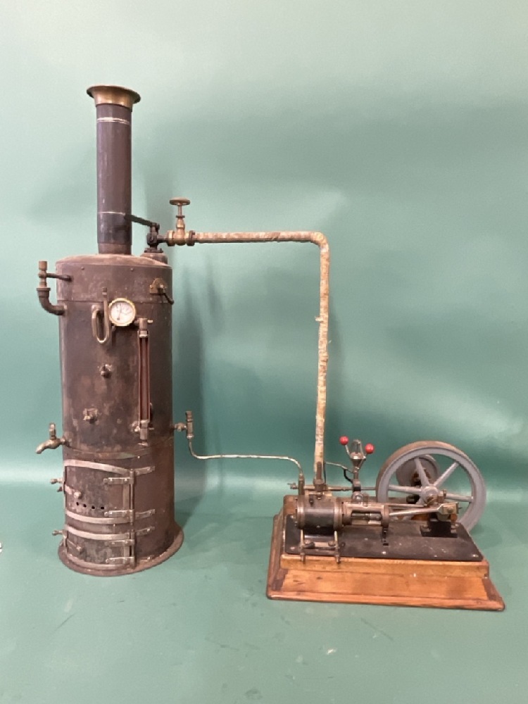 Huge Antique TOY steam Engine and Boiler Unmarked Probably German. An incredible toy in it's day!!