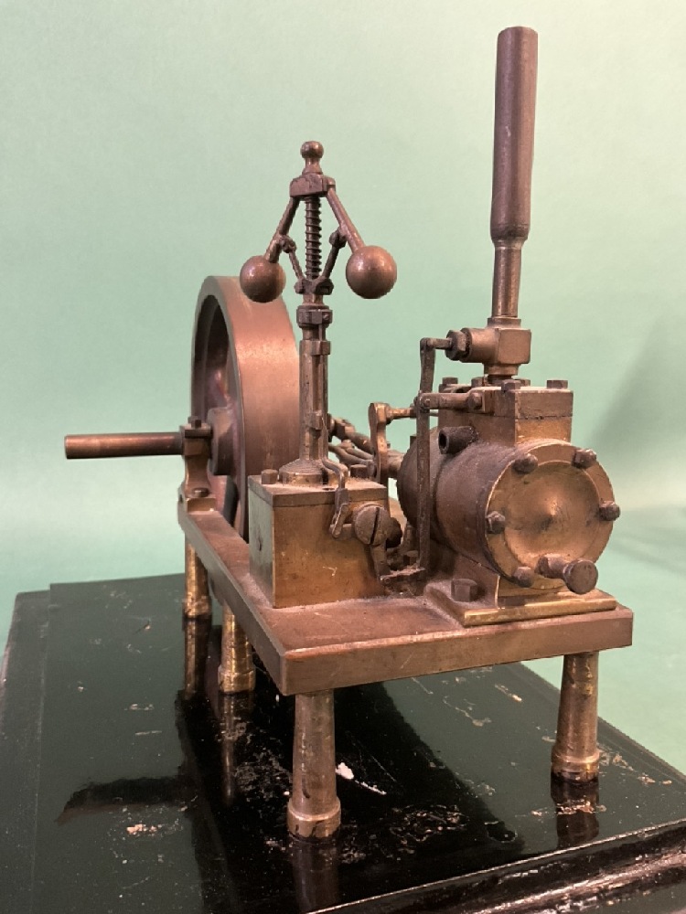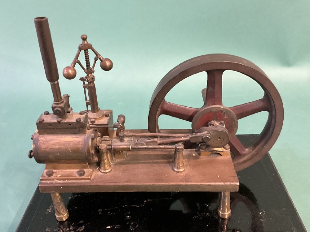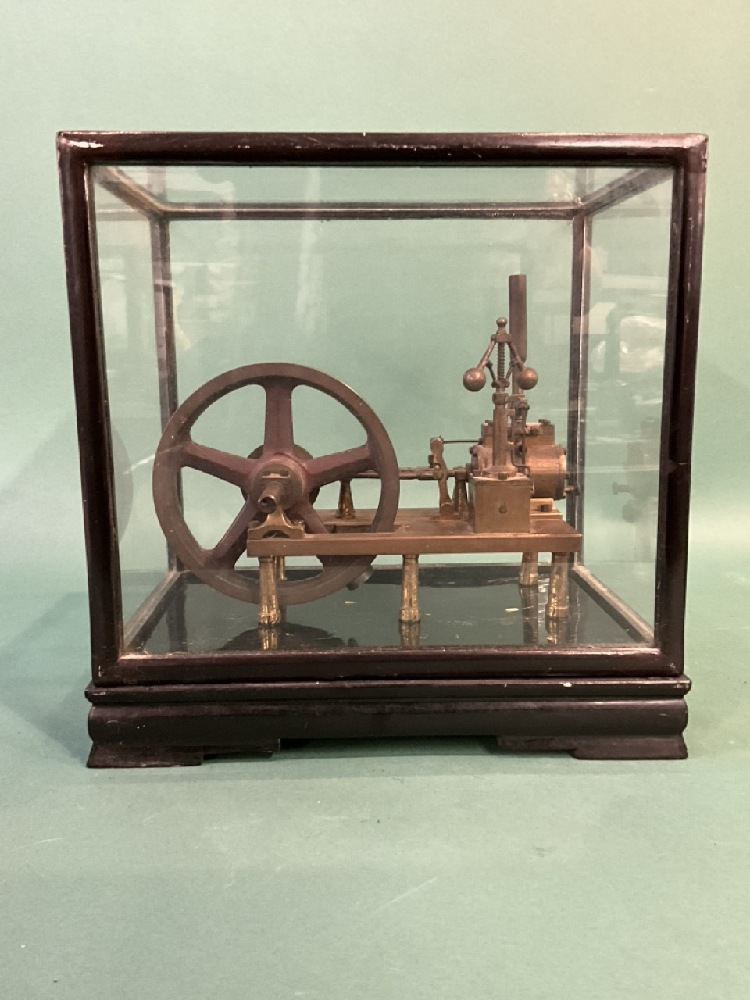 Small, Highly Detailed Iron/Brass Model Steam Engine in Newer Display Case. Working Governor.